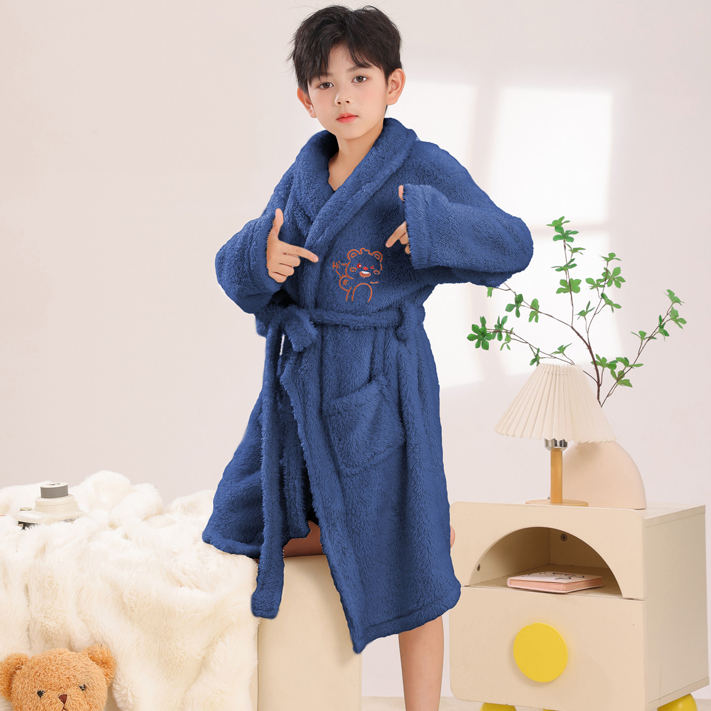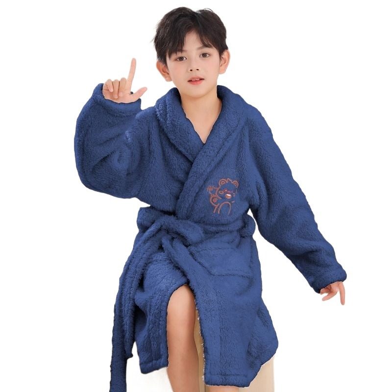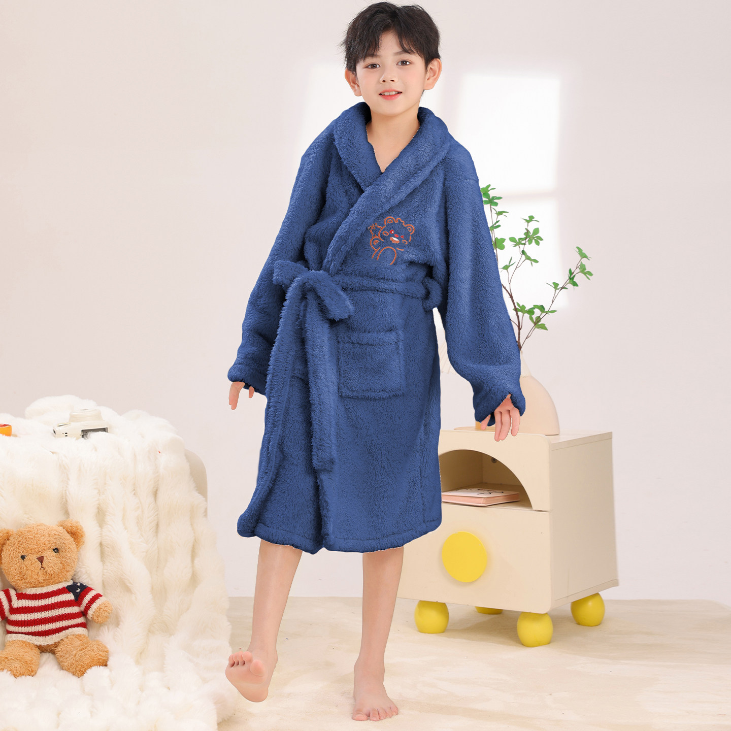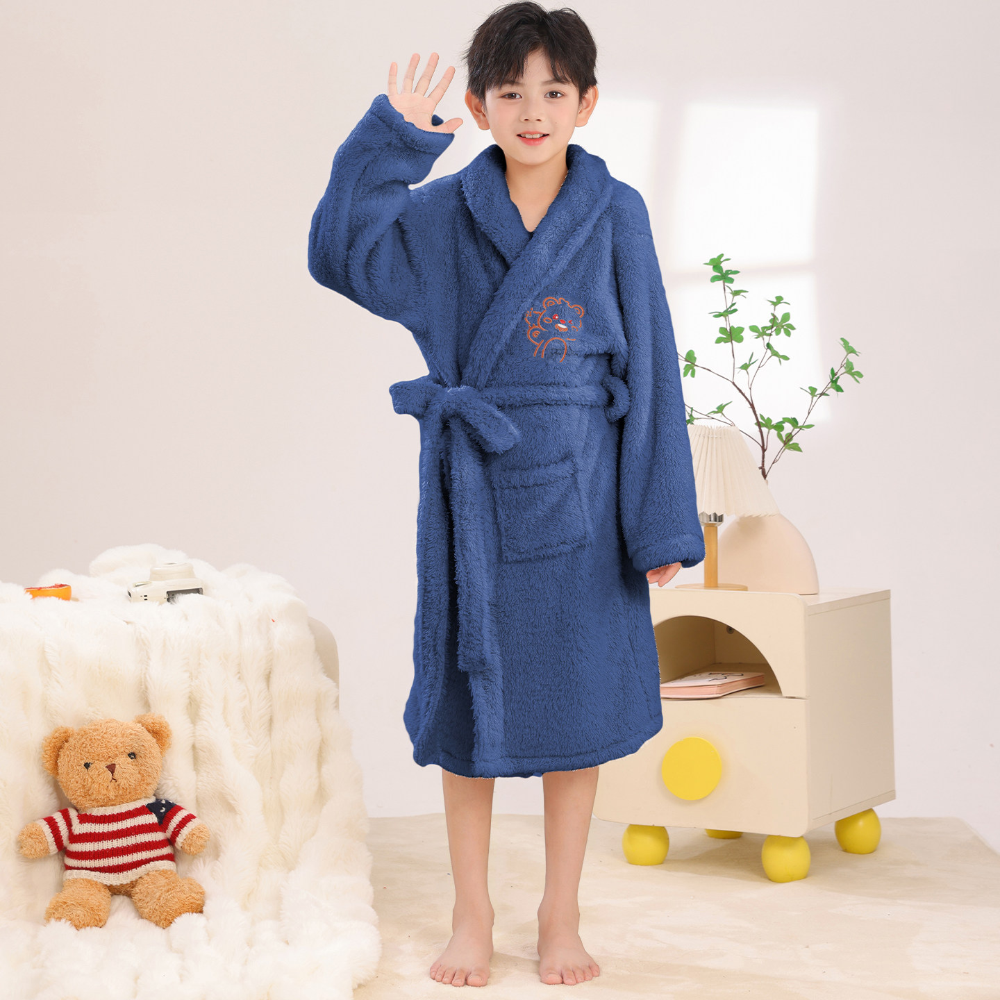 2025儿童法兰绒睡袍秋天冬季珊瑚绒浴衣加厚保暖男童睡衣女童浴袍