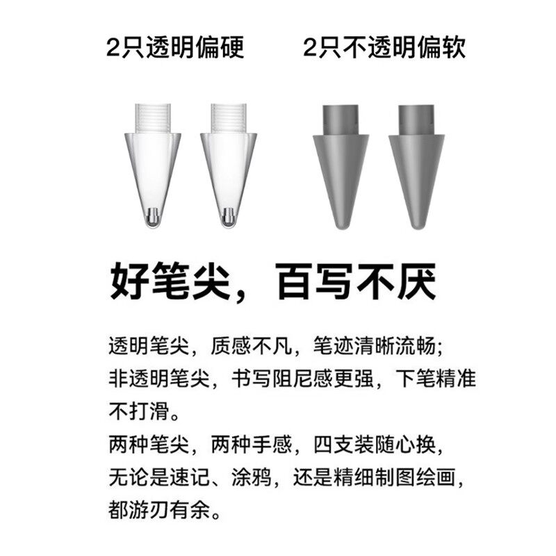 倍思电容笔尖套适用于苹果ApplePencil防滑耐磨静音1/2一代二代ipencil平板硅胶笔尖保护套触控类纸膜双阻尼