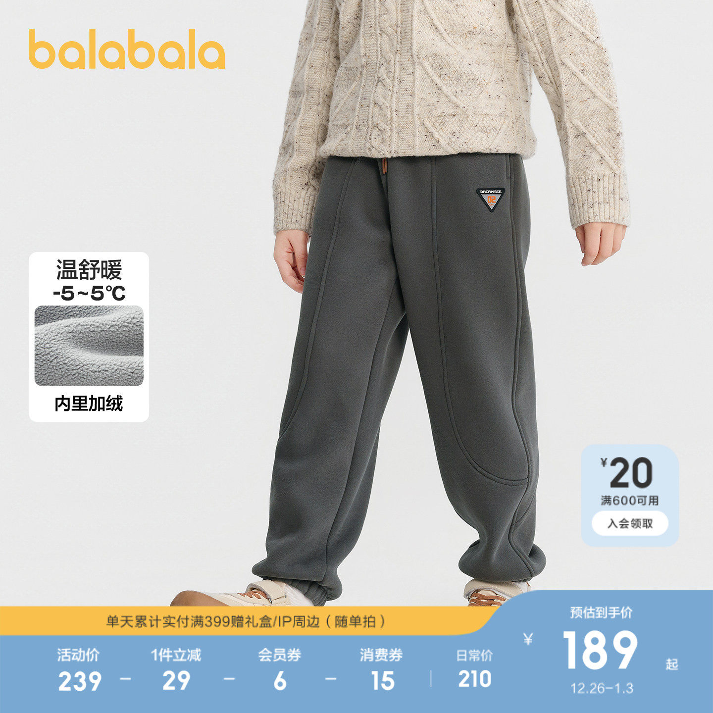 【商场同款】巴拉巴拉童装儿童裤子男童加绒长裤2025冬装新款卫裤