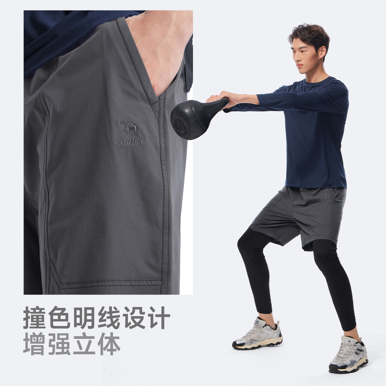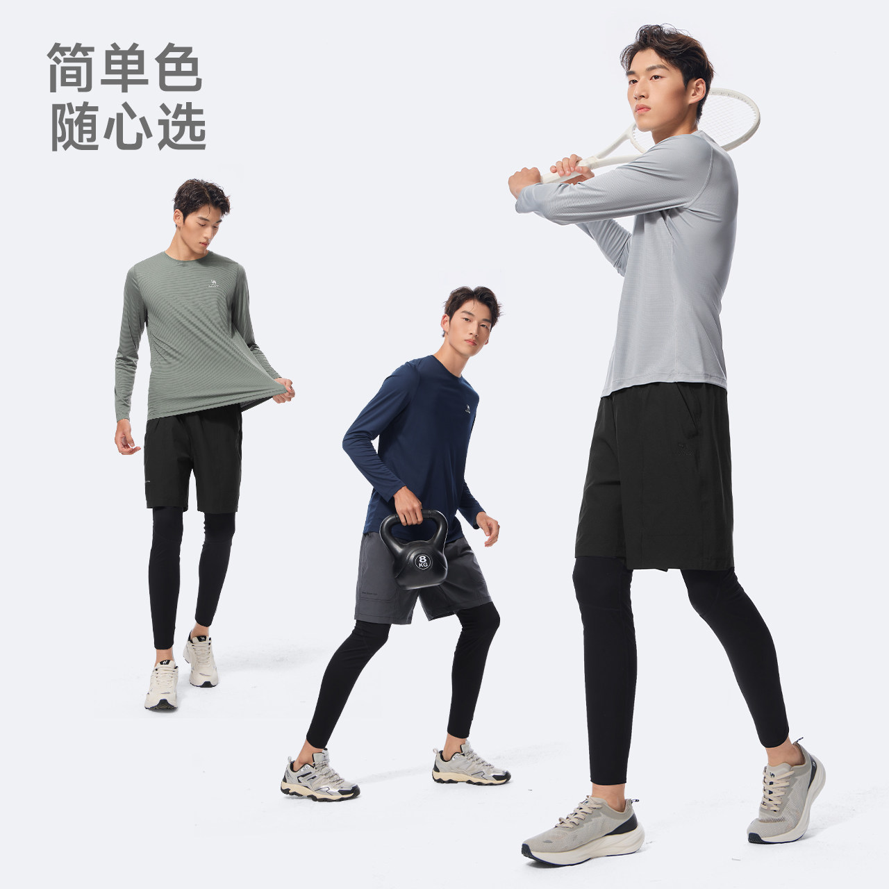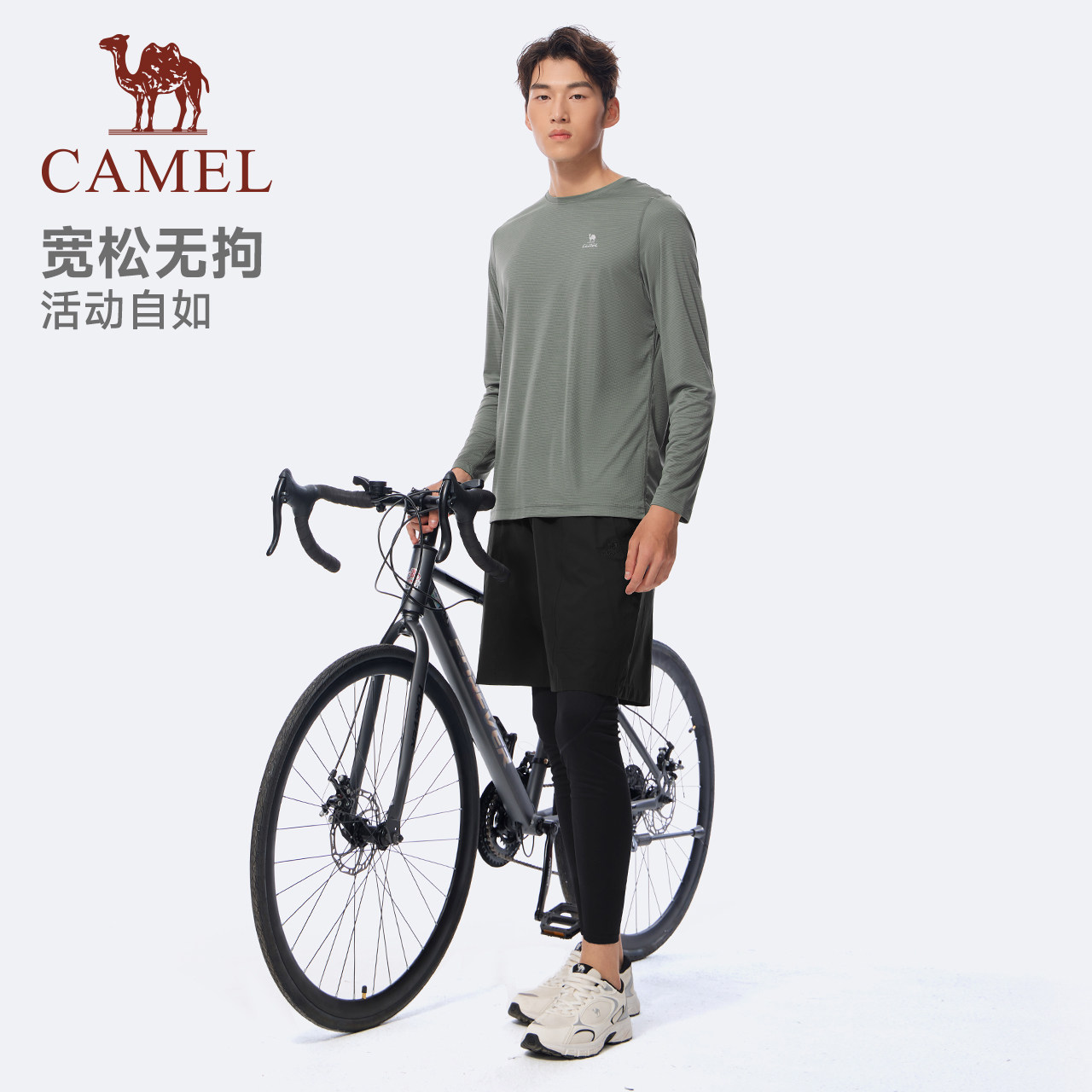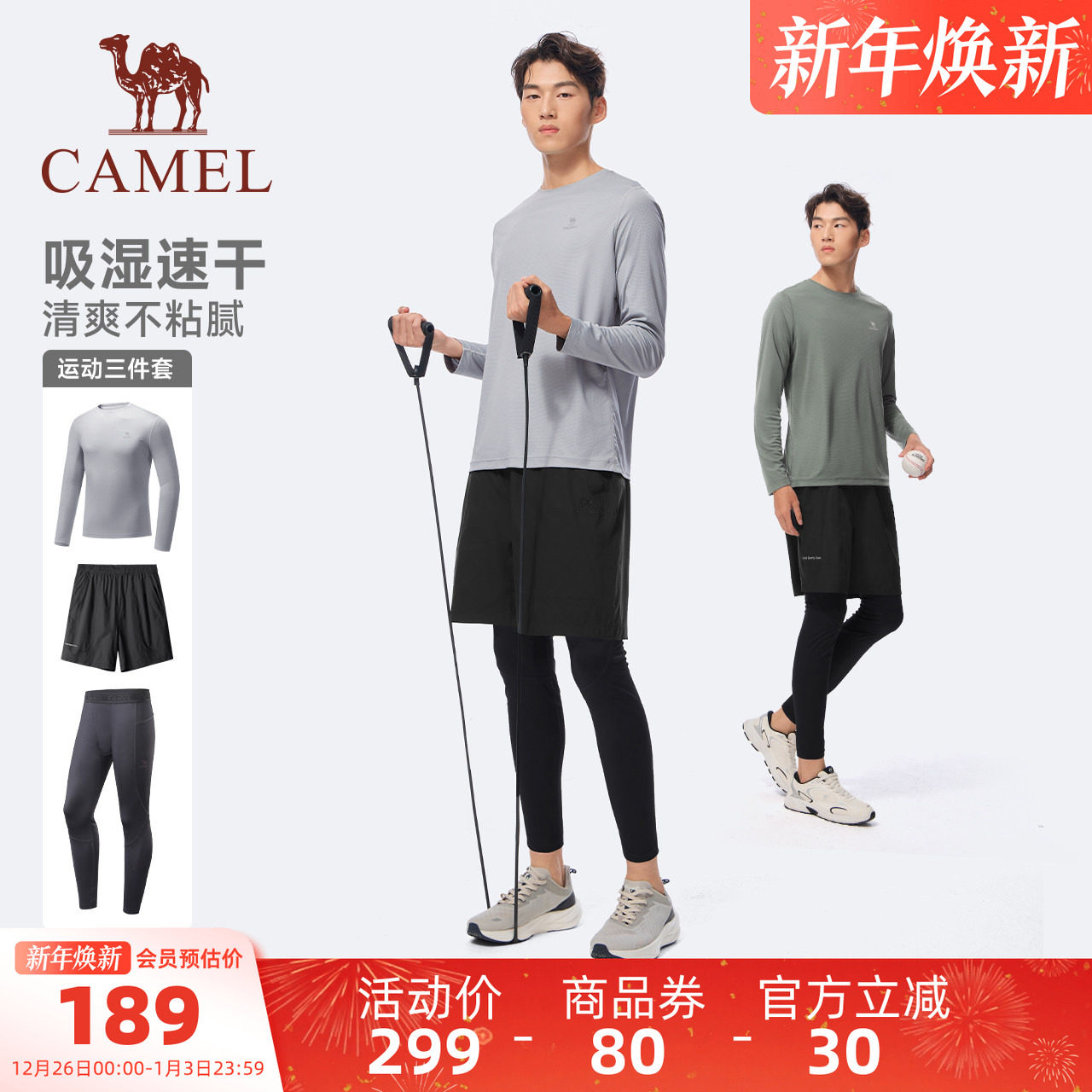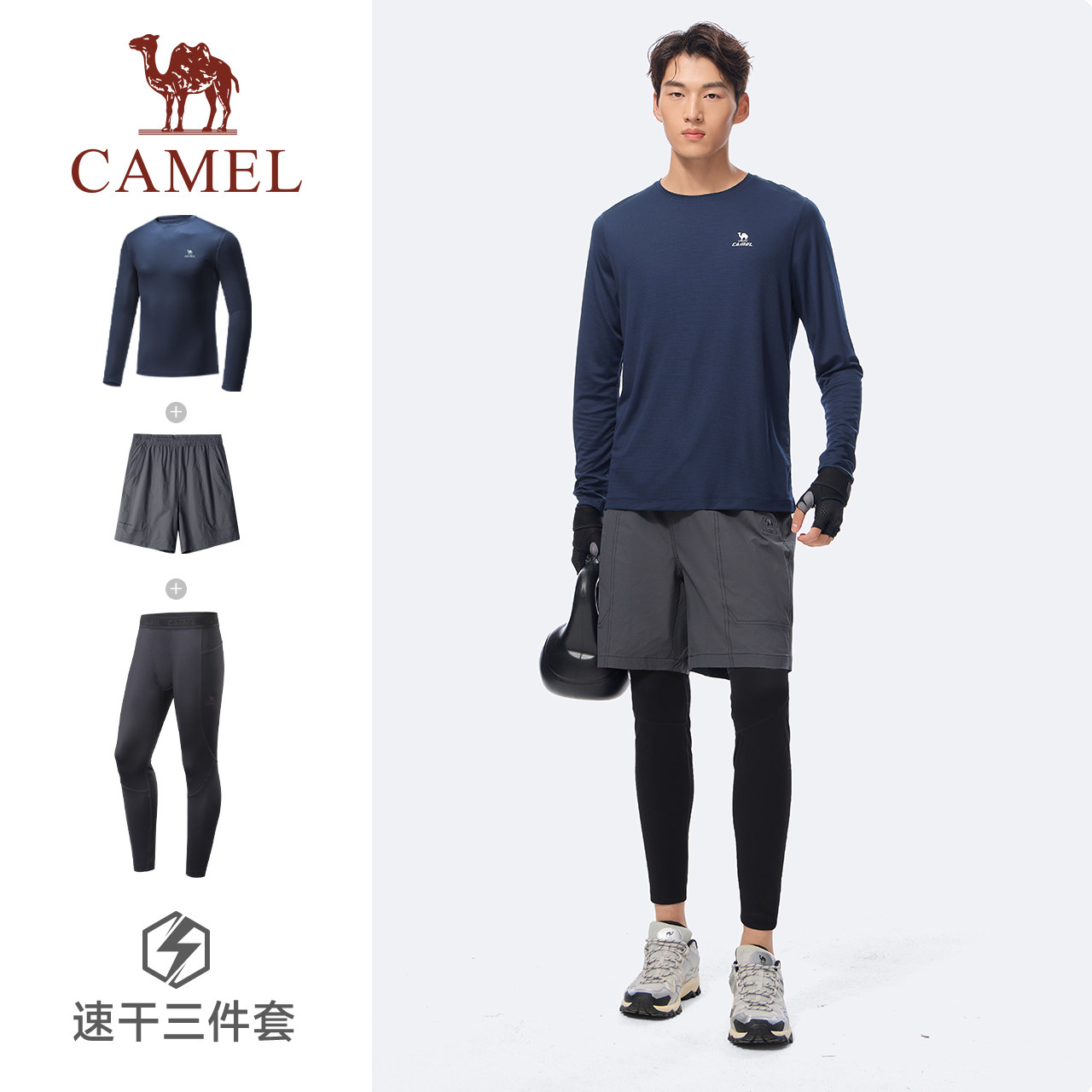 骆驼健身服男运动三件套装跑步篮球训练服速干衣长袖短裤套装
