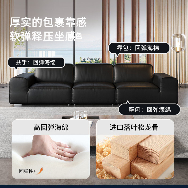 慕思集团旗下艾慕沙发大黑牛真皮客厅黑色意式极简小户型沙发客厅