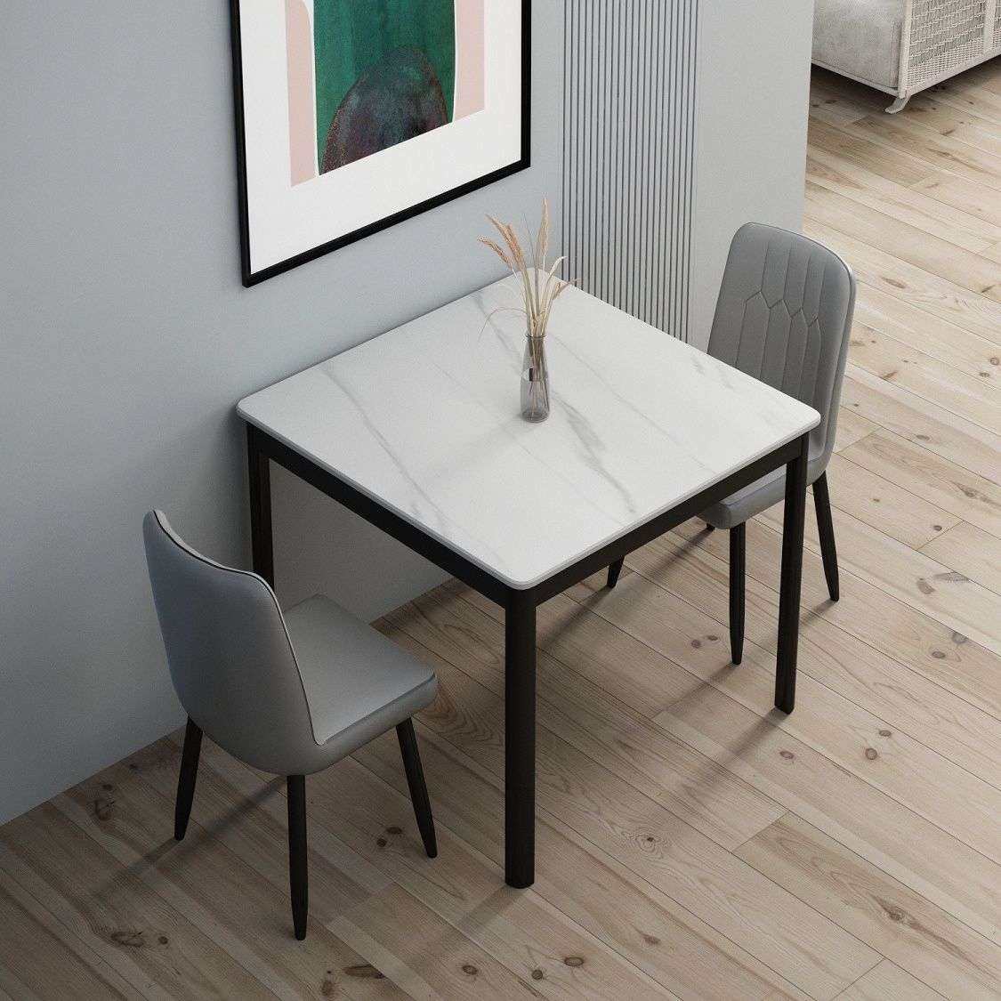 正方形岩板餐桌家用小户型现代简约轻奢吃饭桌子大理石餐桌椅组合