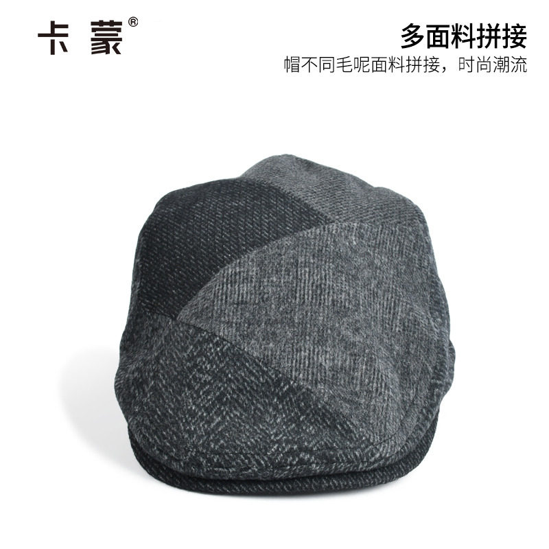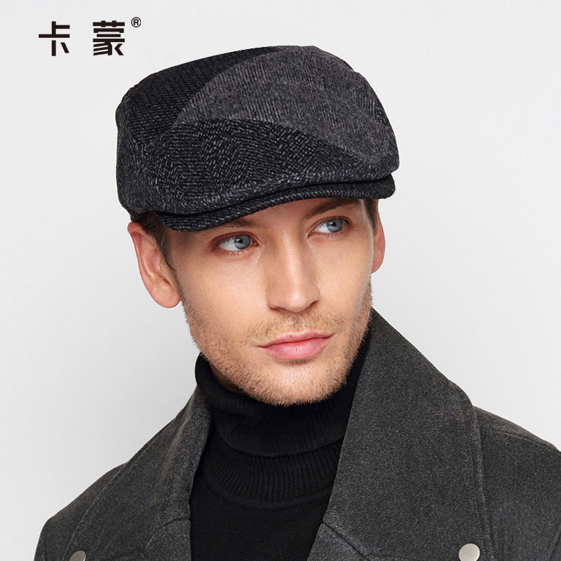 卡蒙秋冬男款帽子潮短鸭舌帽中年男士短檐贝雷帽时尚韩版青年呢帽