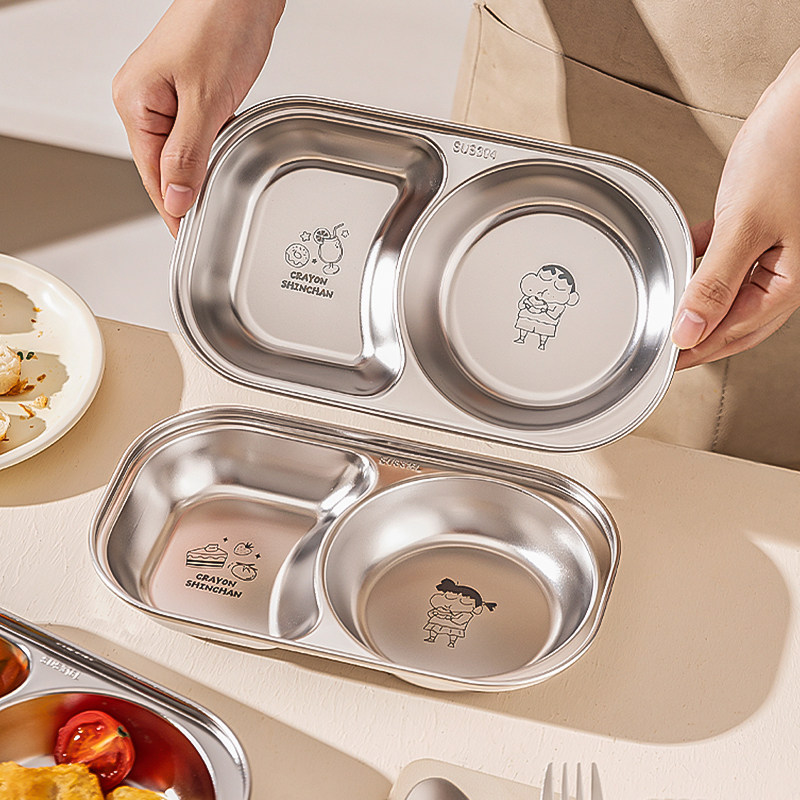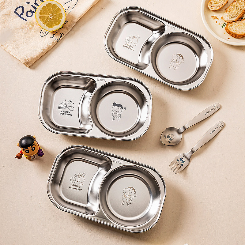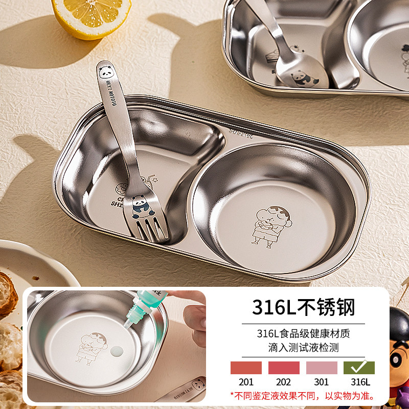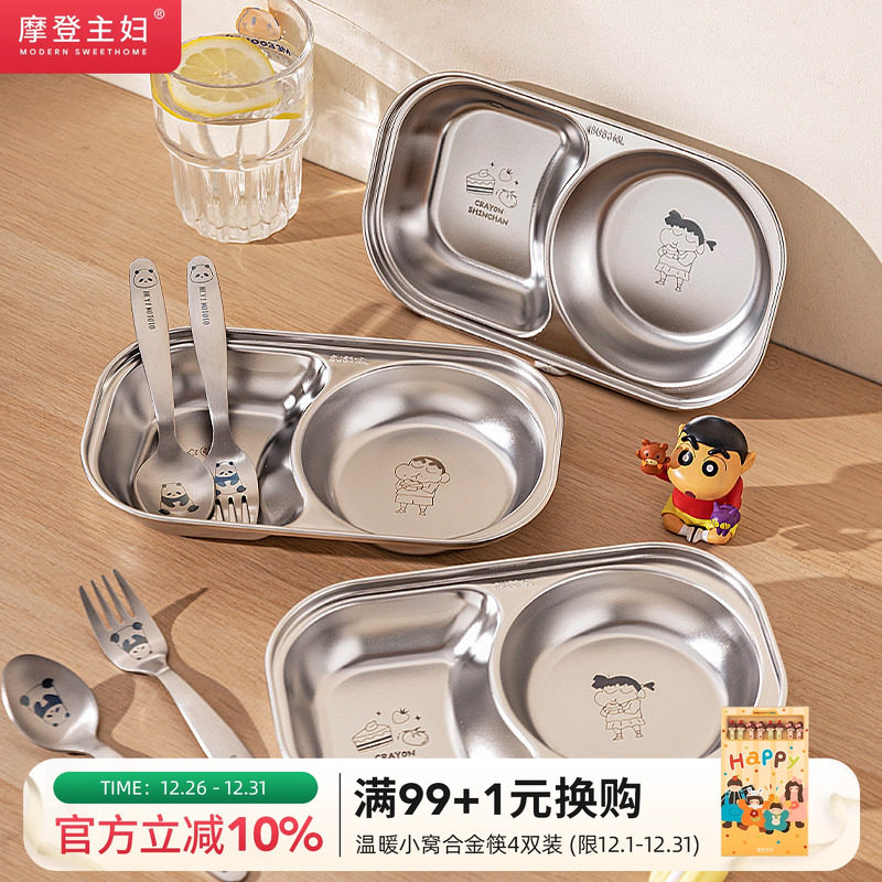 【摩登主妇&蜡笔小新】儿童分格餐盘316L不锈钢餐具宝宝辅食餐盘