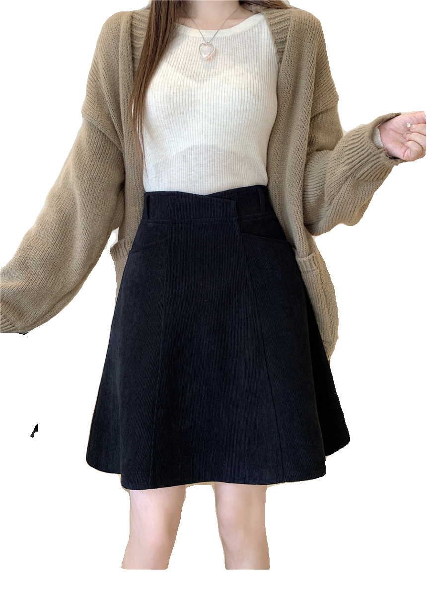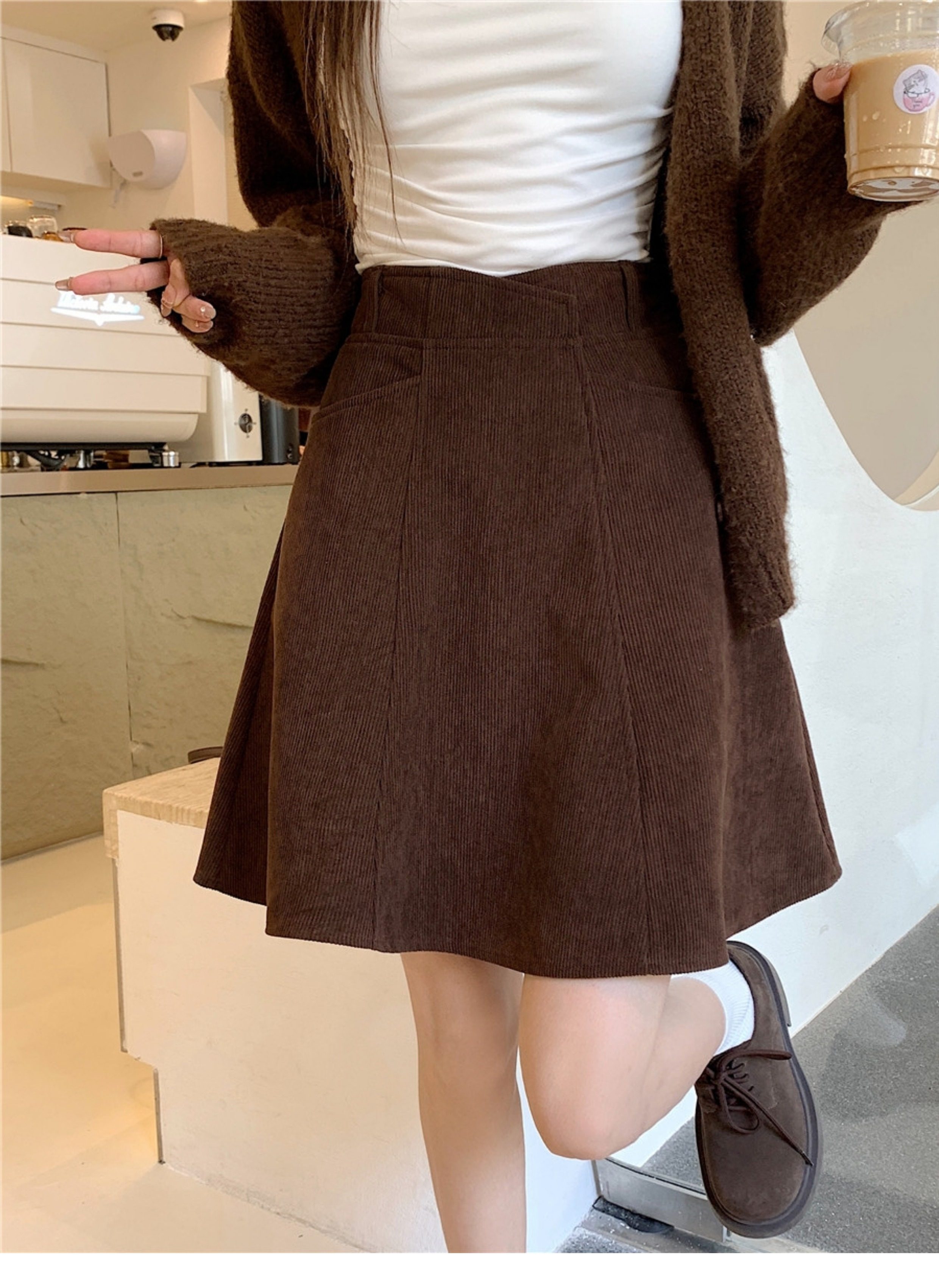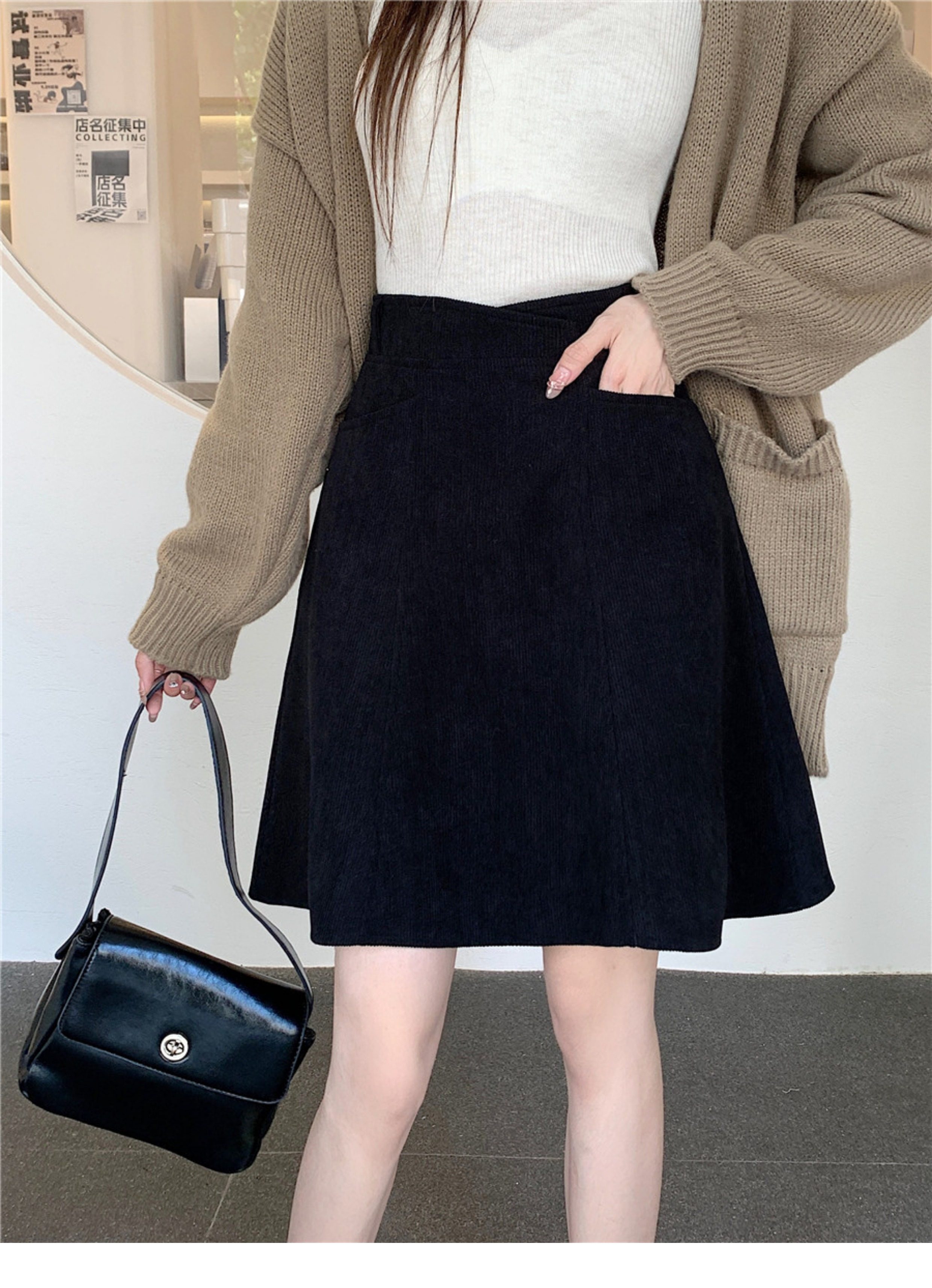 大码复古灯芯绒高腰半身裙女秋冬胖mm显瘦遮胯A字短裙防走光伞裙
