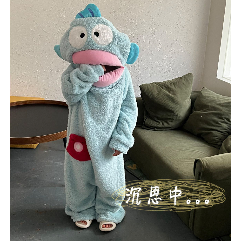 丑鱼睡衣连体儿童秋冬季加厚珊瑚绒男童法兰绒女童睡袍浴袍家居服