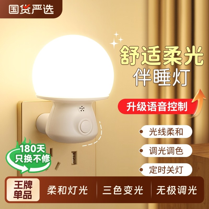 语音声控小夜灯智能卧室睡眠灯感应灯婴儿喂奶护眼遥控插电床头灯
