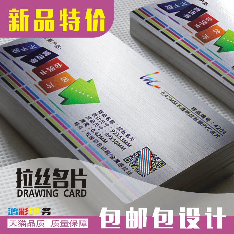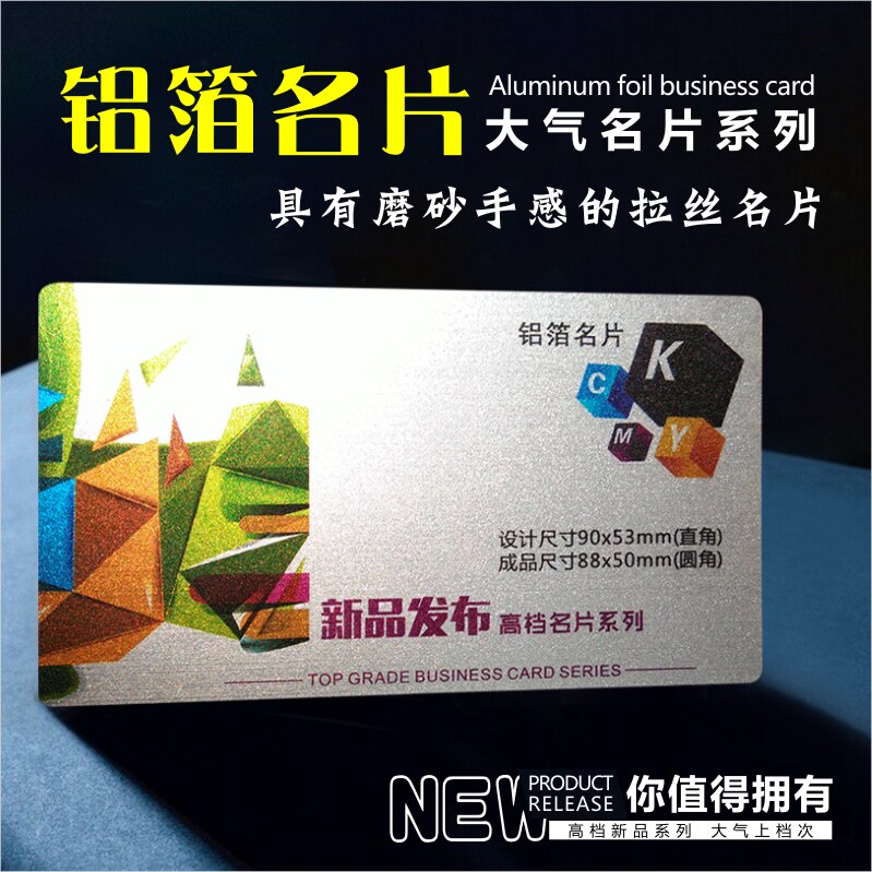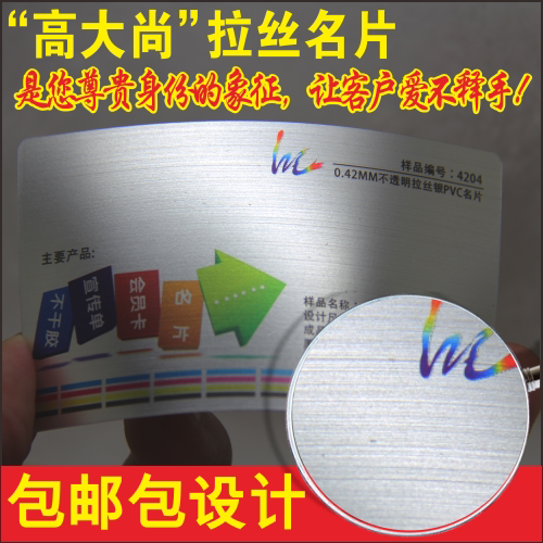 打印PVC拉丝名片制作印刷铝箔光面磨砂金属质感烫金闪金银塑料定制免费设计时尚创意高档个性商务订做包邮