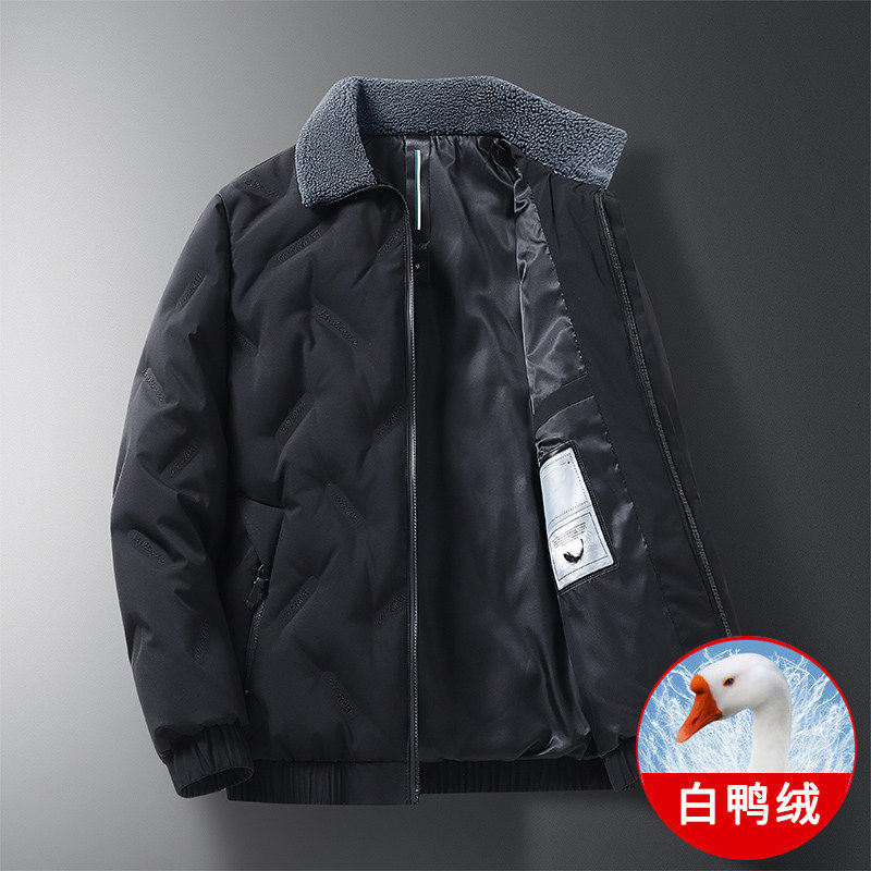 幂琳毛领羽绒服男冬季短款加厚保暖中老年人爸爸冬装翻领宽松国标