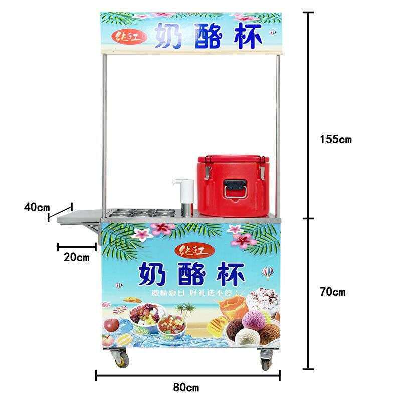 网红流动奶酪杯推车折叠可选雪花奶酪酸奶沙冰雪糕摆摊冷饮小推车