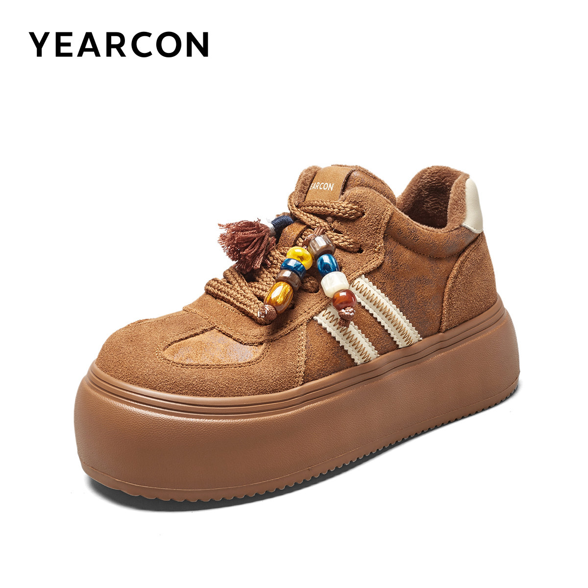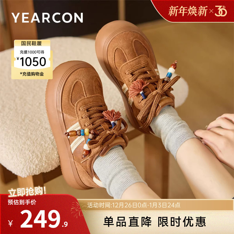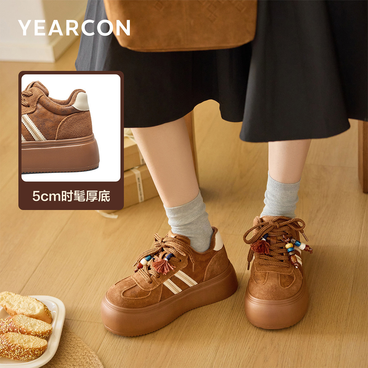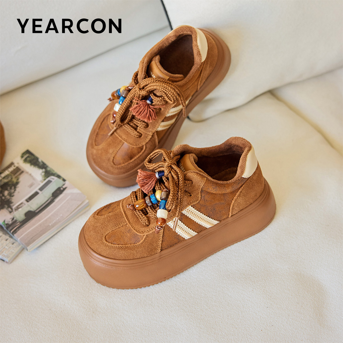 意尔康女鞋2025冬季厚底板鞋加绒保暖二棉鞋德训鞋美拉德大头鞋