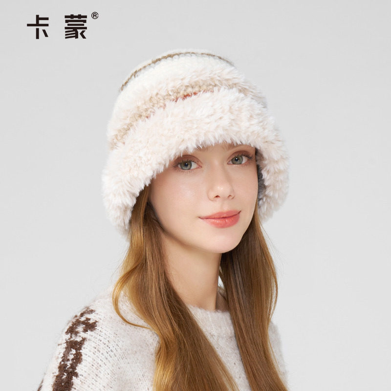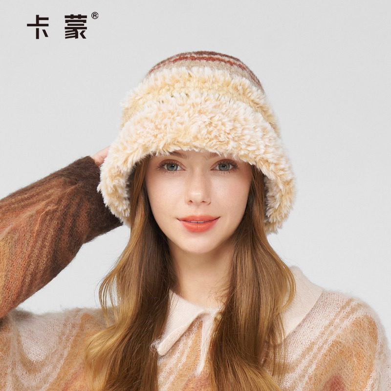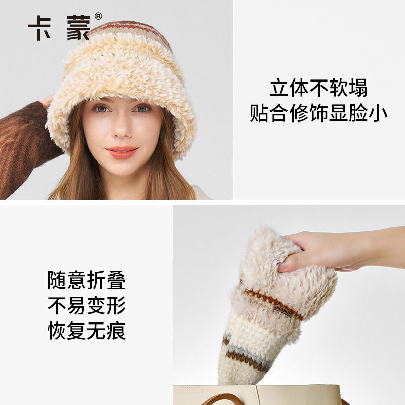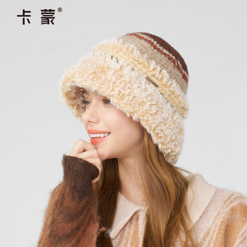 卡蒙手工编织毛绒针织盆帽女款秋冬天护耳渔夫帽大头保暖毛线帽子