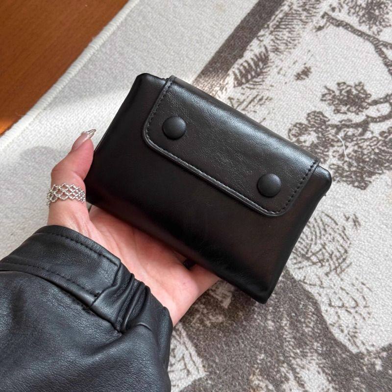 韩版软糯复古植鞣软包小眼睛钱包短款钱包拉链暗线零钱包卡包