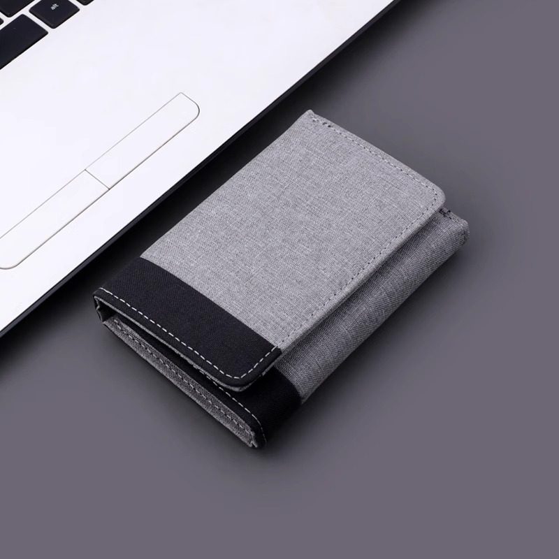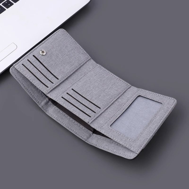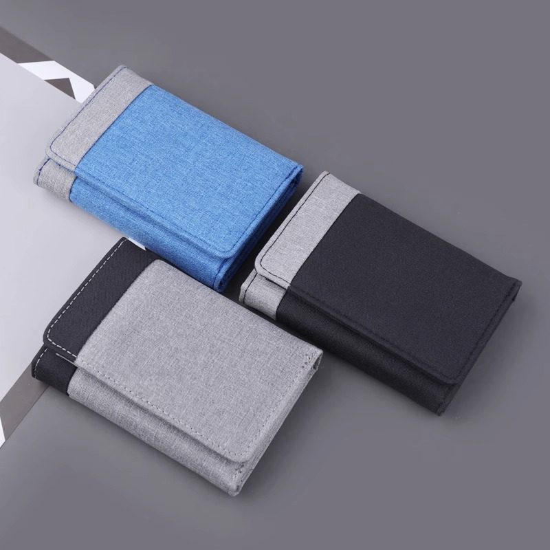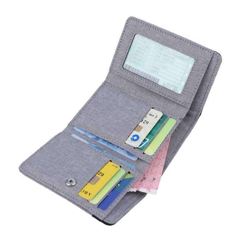 多卡位竖款钱包男学生短款小皮夹证件卡包三折帆布年轻人轻薄钱夹