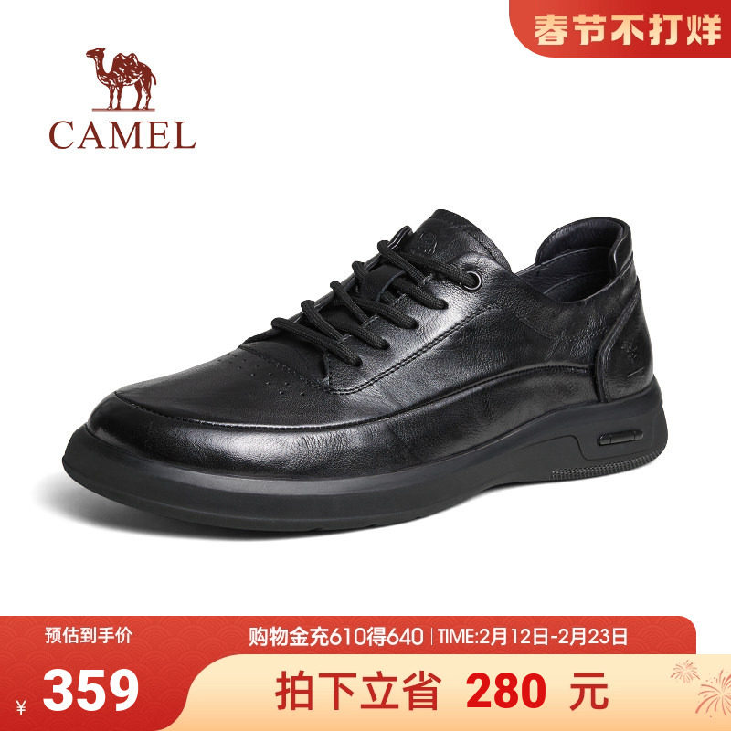 骆驼2024春季新款柔软真皮耐磨舒适软底通勤休闲商务运动皮鞋男士