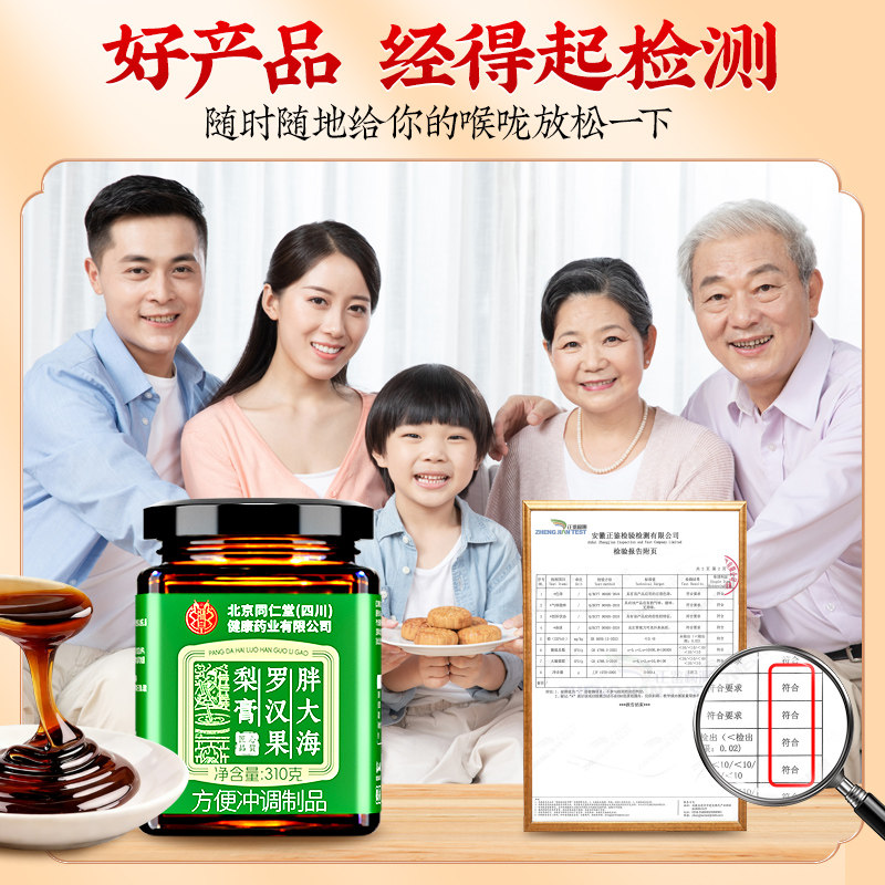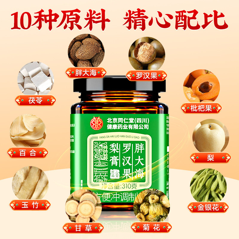 罗汉果胖大海枇杷秋梨膏止润痰肺化咳官方旗舰店正品儿童无添加