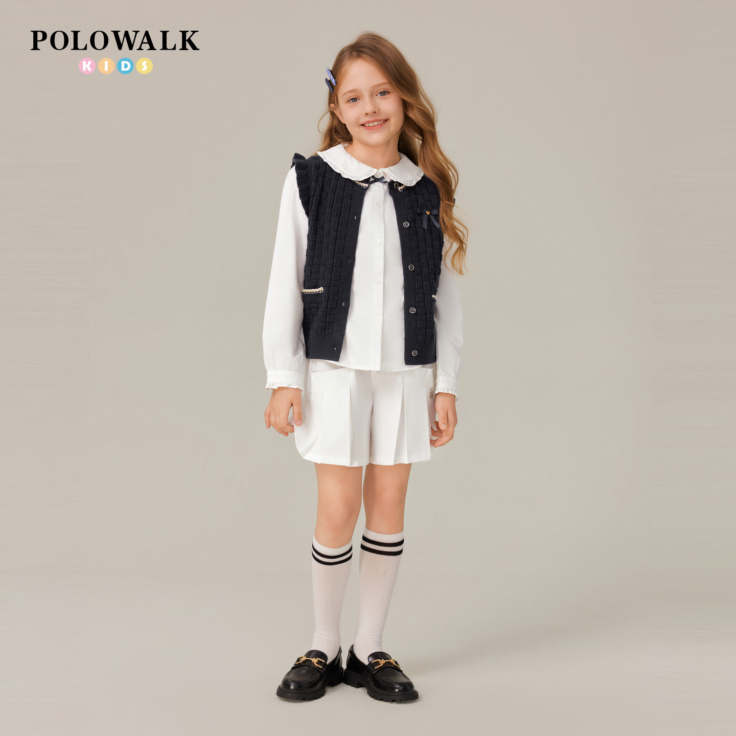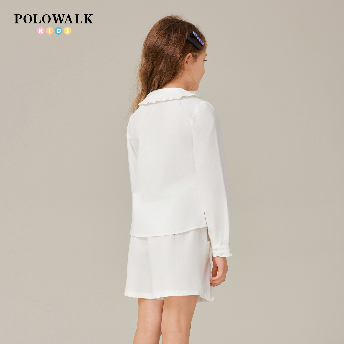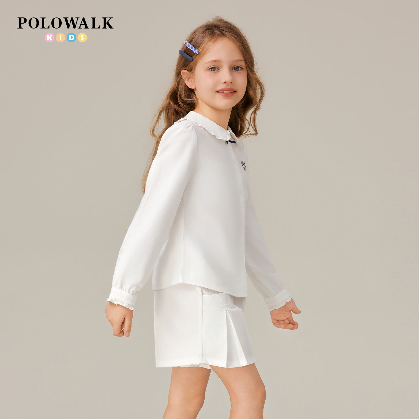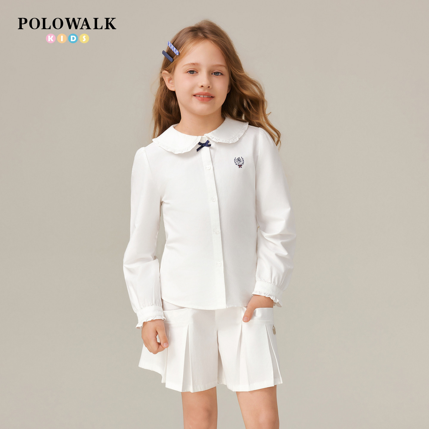 POLOWALK童装女童长袖衬衫2025秋季新品学院风刺绣上衣中大童外套