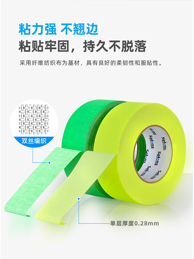 Selens/喜乐仕舞台影视大力胶12mm摄影荧光布基胶带24mm日本影视剧组哑光剧场标记黑白无痕胶条荧光道具影楼