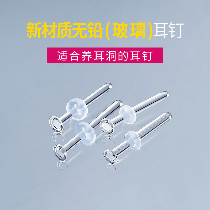 玻璃耳钉无铅养耳洞透明隐形耳棒鼻钉耳骨钉学生耳环饰品睡觉免摘