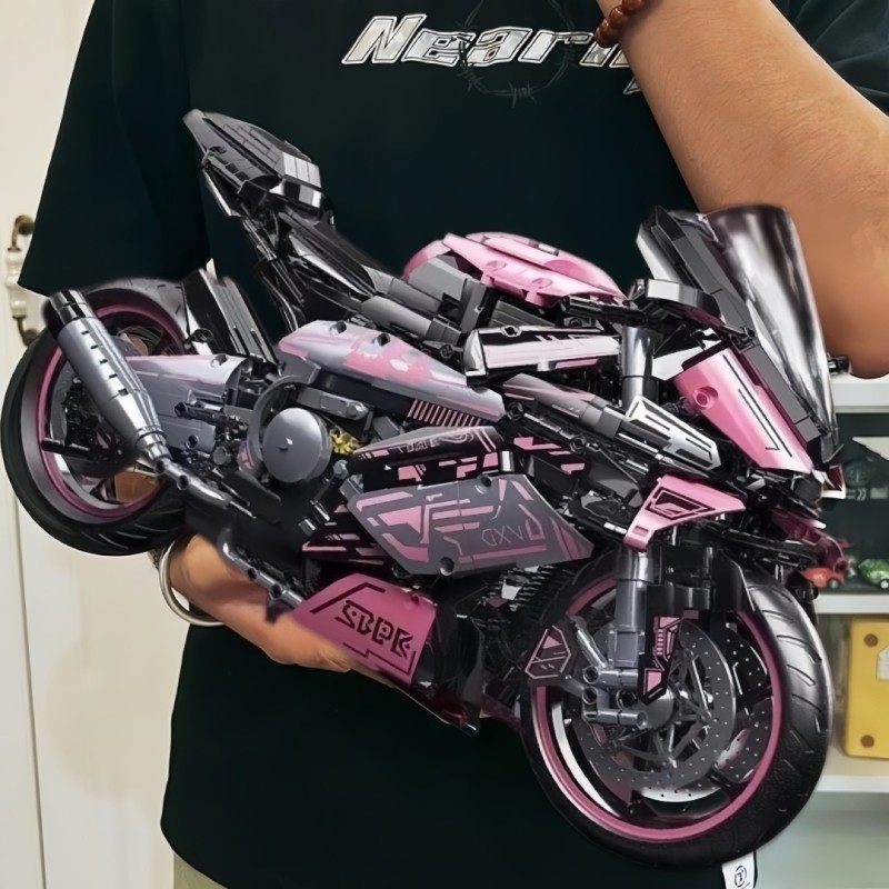 粉色宝马M1000RR机车积木兼容乐高拼装摆件机械跑车玩具男孩礼物