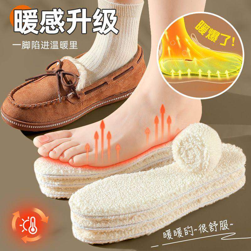 羊羔绒保暖鞋垫女秋冬季加绒加厚舒适不挤脚吸汗防潮防臭棉鞋垫男