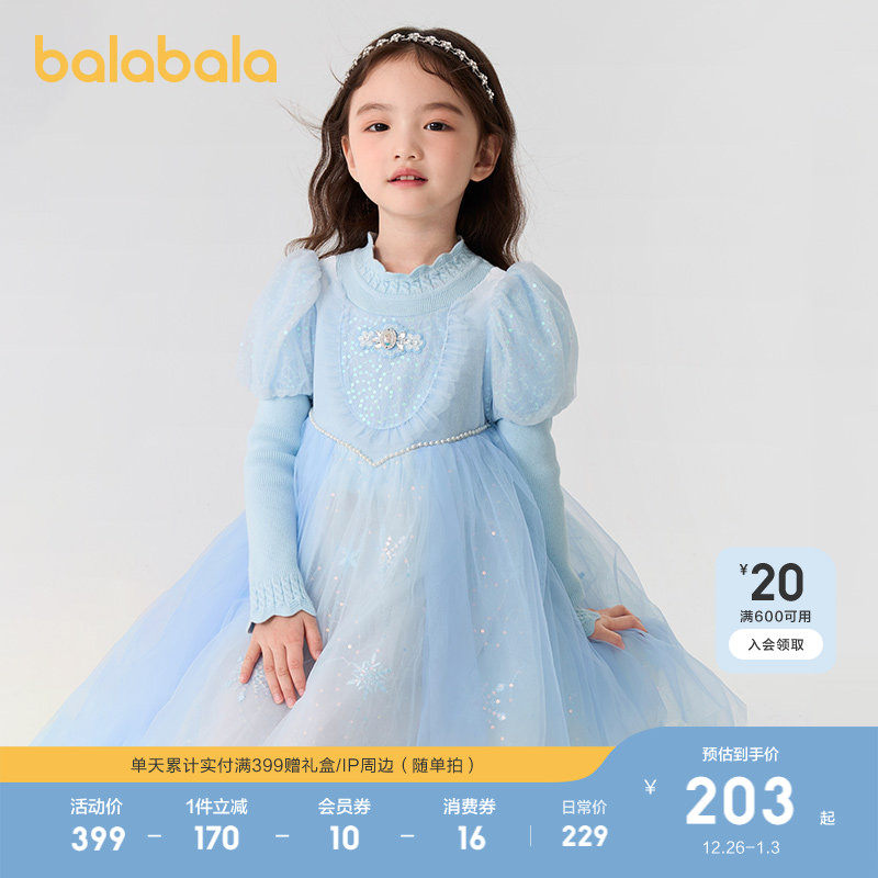 【艾莎IP】巴拉巴拉童装儿童连衣裙女童秋冬装公主裙泡泡袖洋气甜