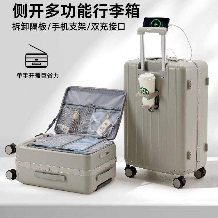 漫游新款侧开盖行李箱可扩展拉杆箱拉链20寸24旅行箱登机皮箱女男