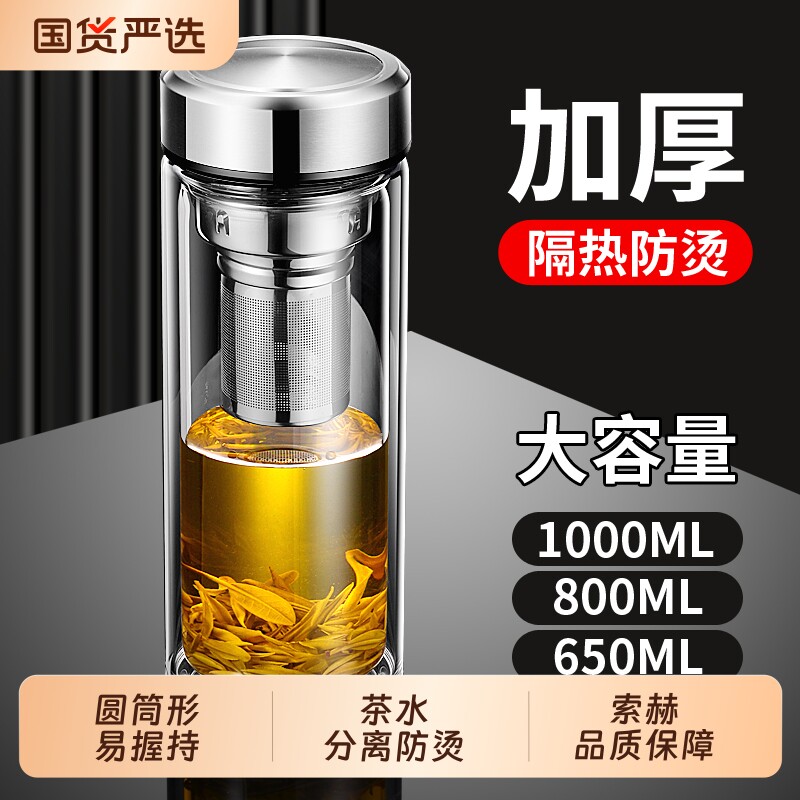 索赫防爆双层玻璃杯男家用泡茶杯水杯加厚茶水分离女士大容量隔热