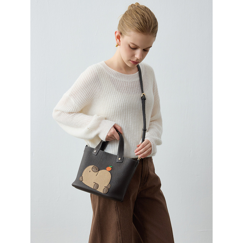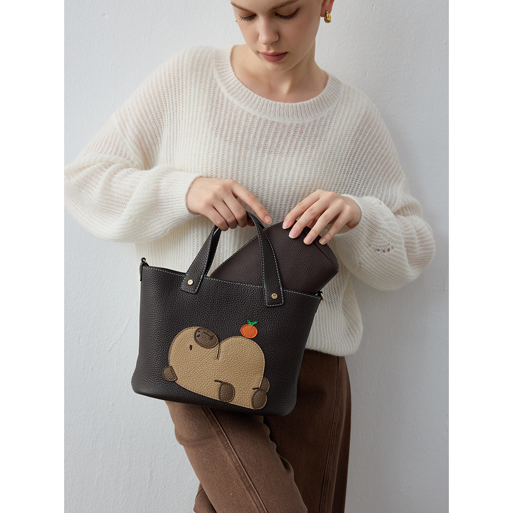 伊米妮2025通勤原创设计卡皮巴拉拉真皮慵懒风新品手提斜挎托特包