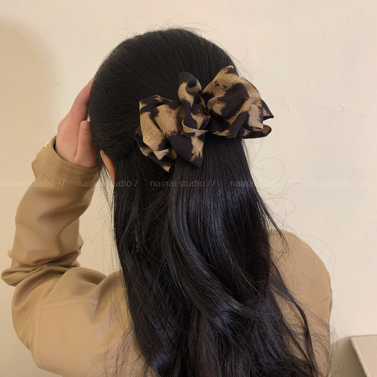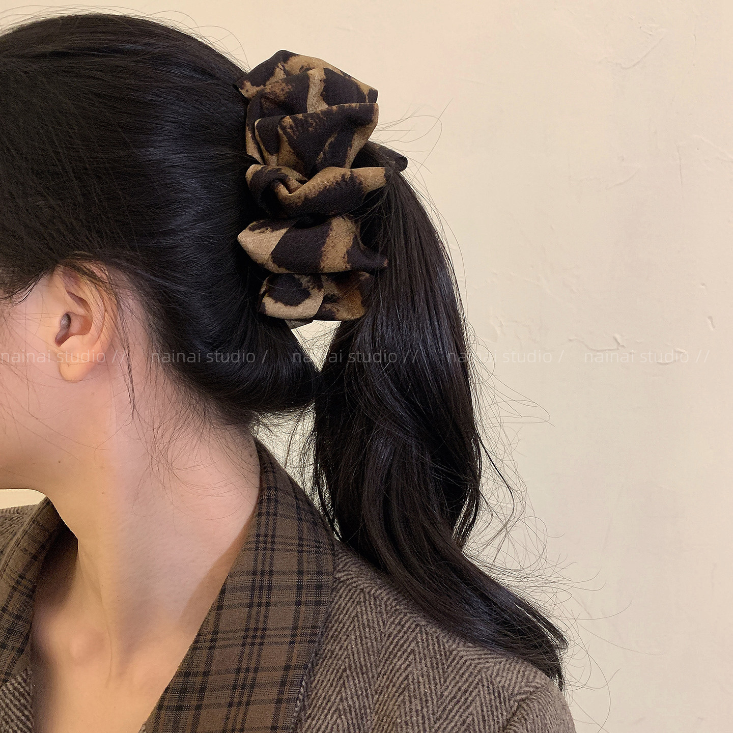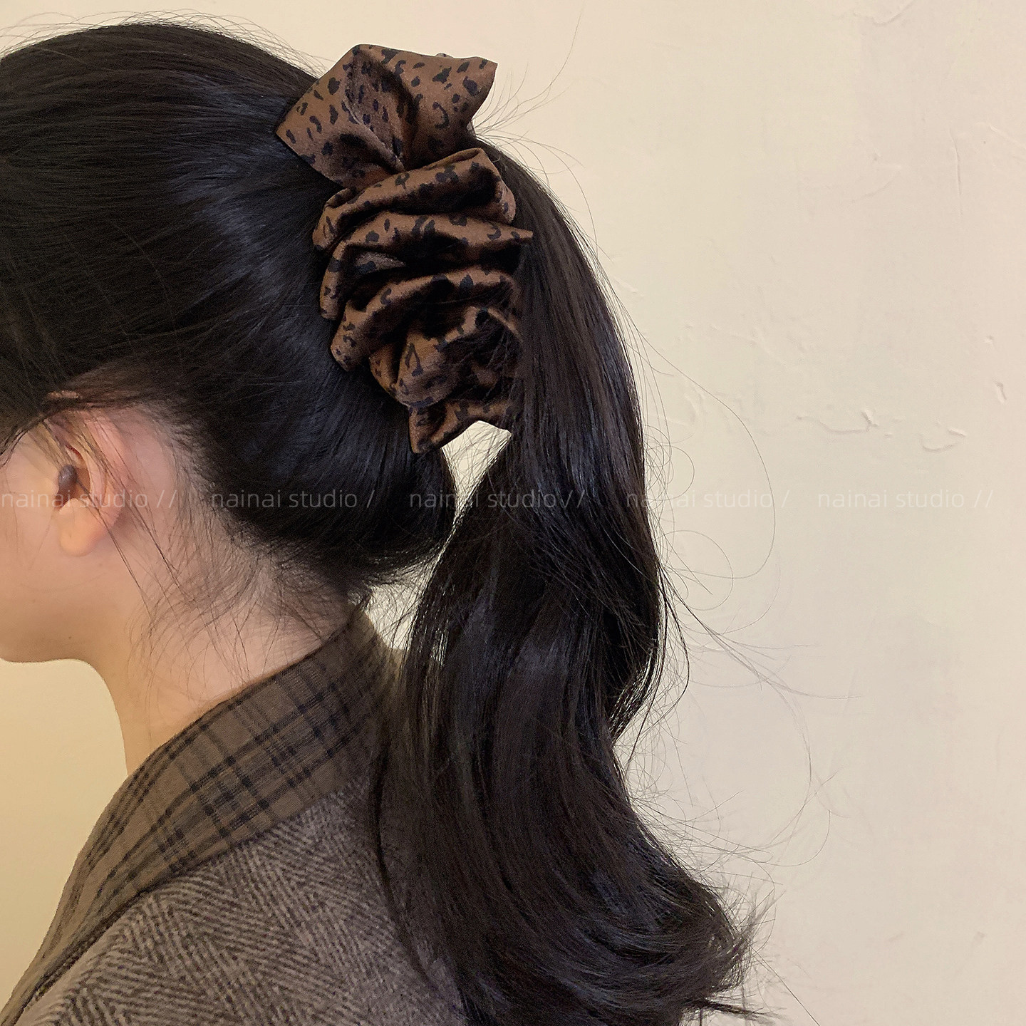 复古豹纹竖夹~褶皱显发量多马尾香蕉夹2025秋冬新款扭扭夹发夹女