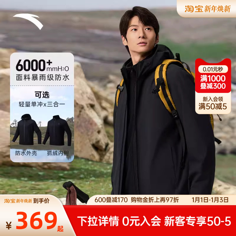 安踏三合一冲锋衣丨大地之壳男士户外防风防水登山服男款加绒外套