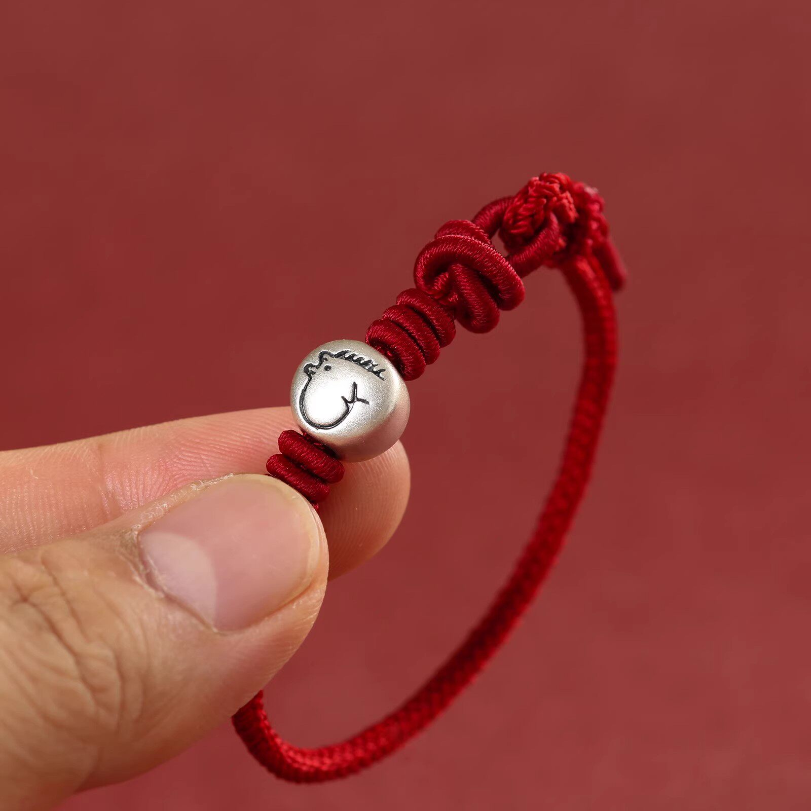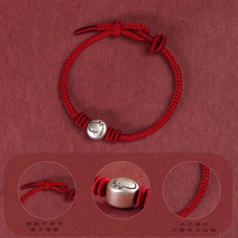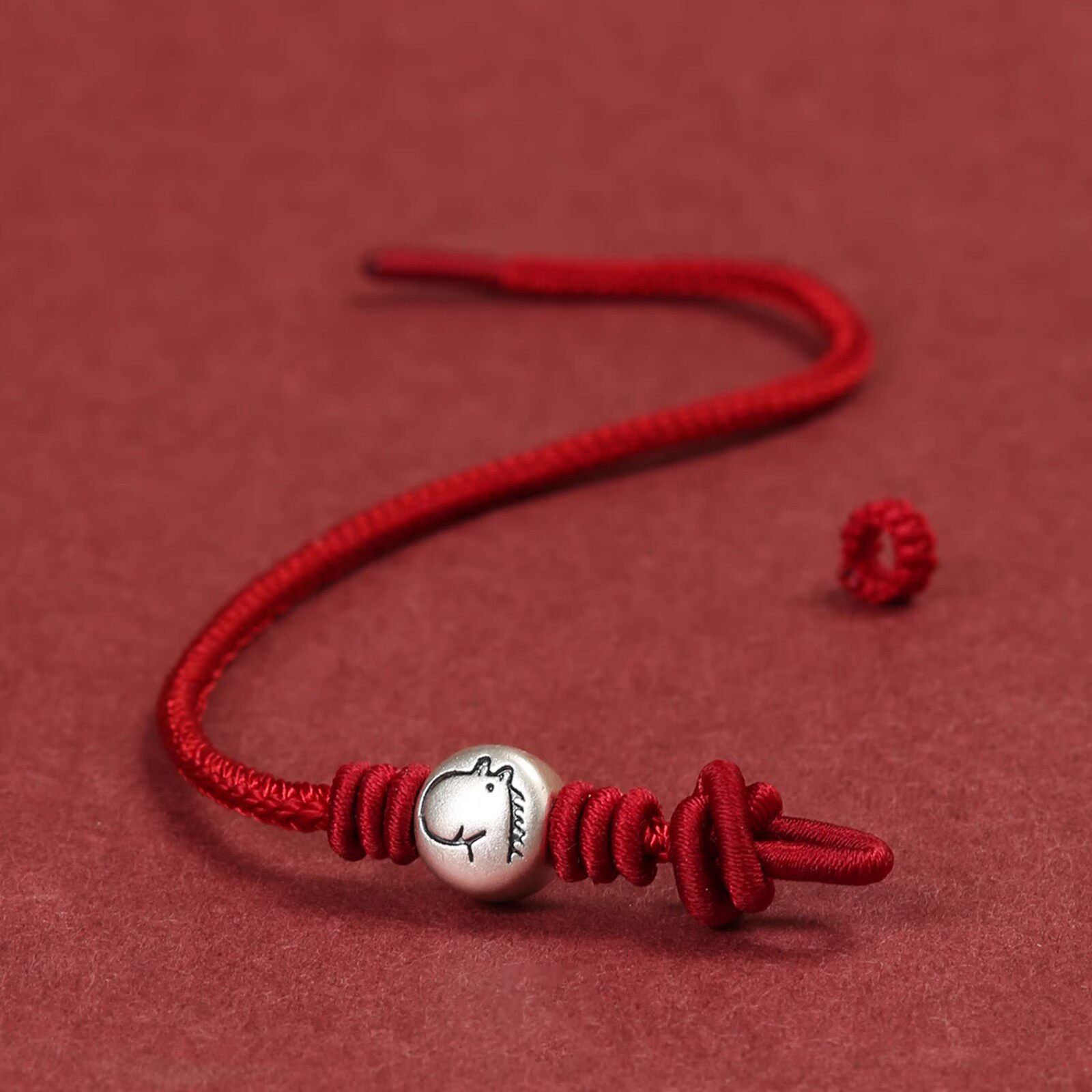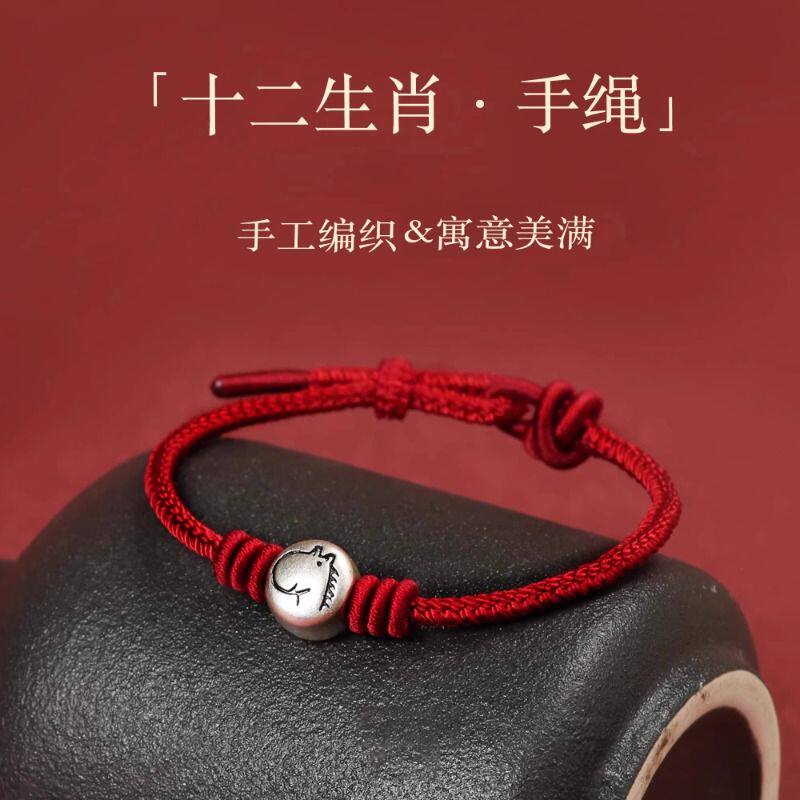 本命年足银十二生肖红绳手链手工编织属马女三合六合转运珠手绳男