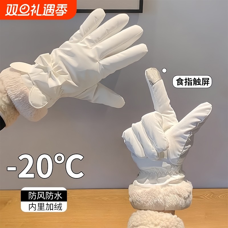 棉滑雪手套男女冬季防水触屏跑步运动骑行登山装备加绒厚保暖防风