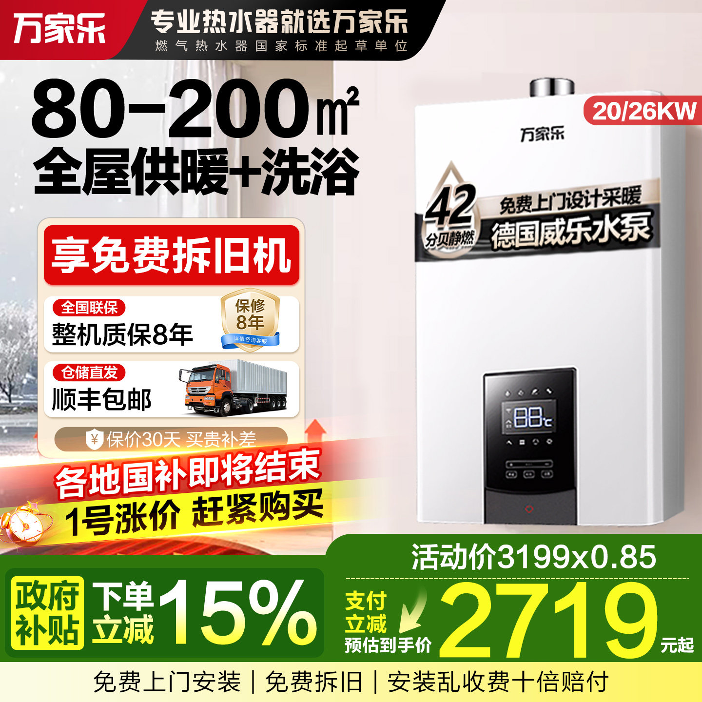 万家乐壁挂炉天然气家用燃气锅炉零冷水采暖洗浴两用地暖暖气炉