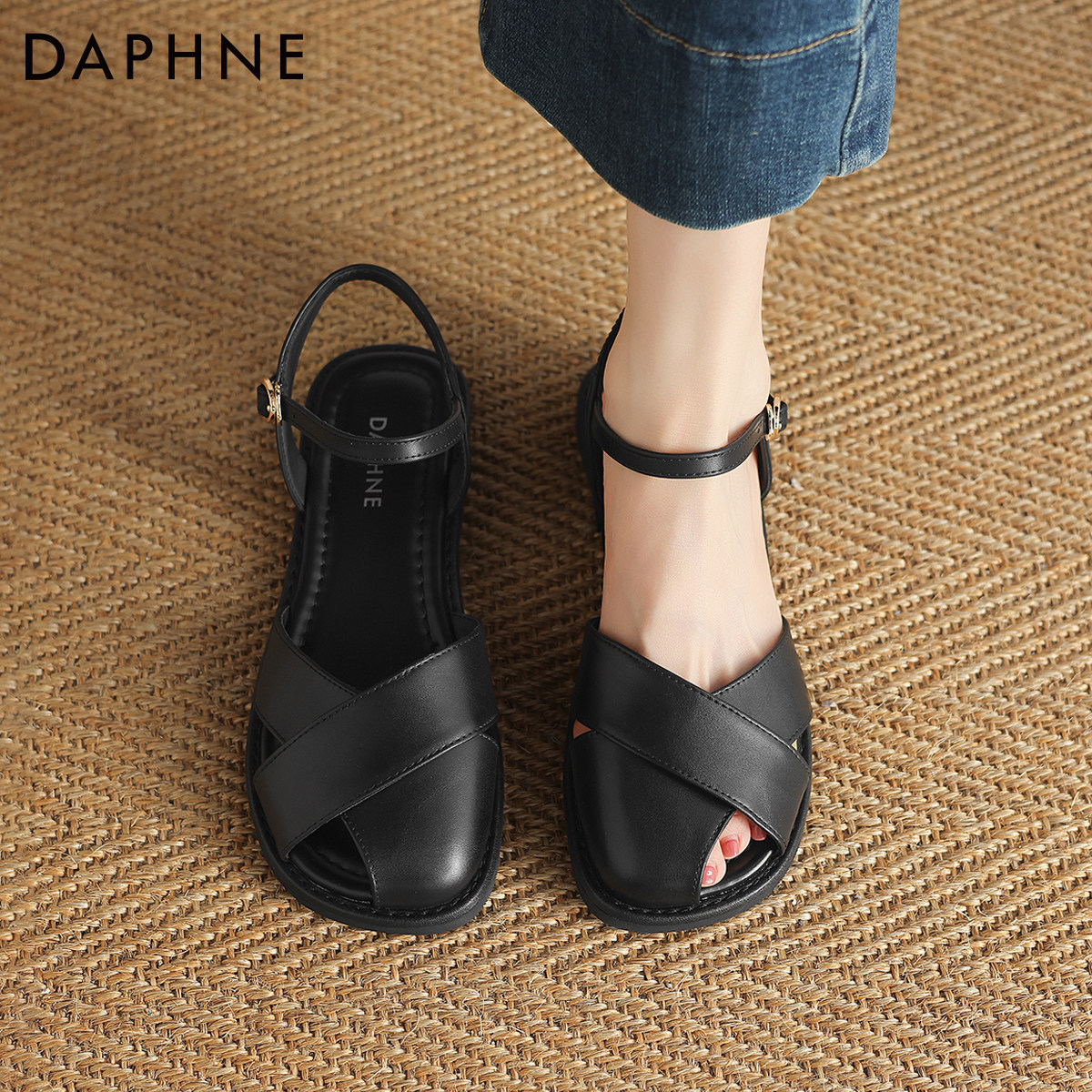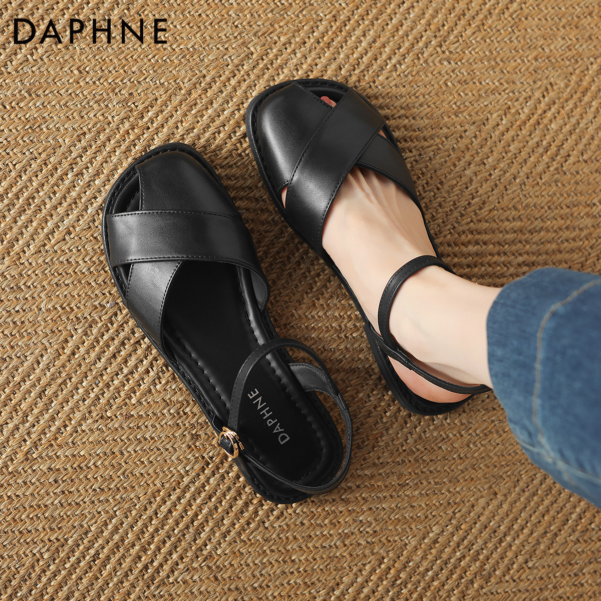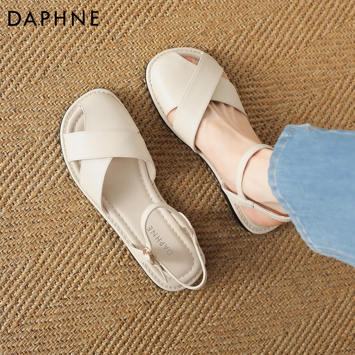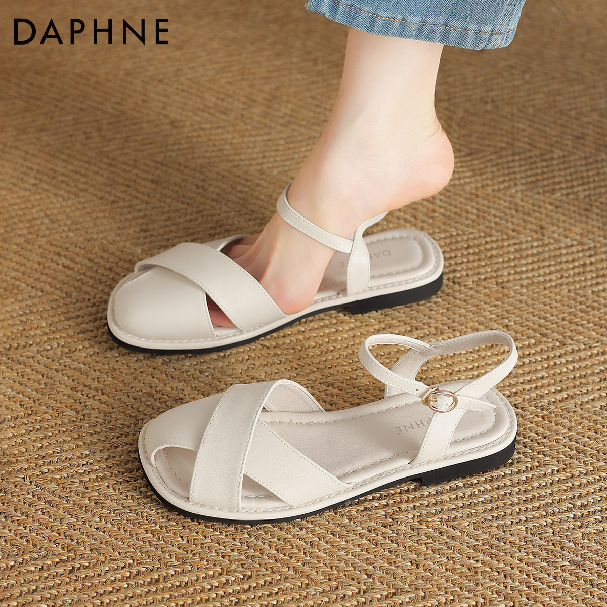 达芙妮镂空凉鞋女款2026新款法式平底凉拖鞋女夏外穿包头罗马凉鞋
