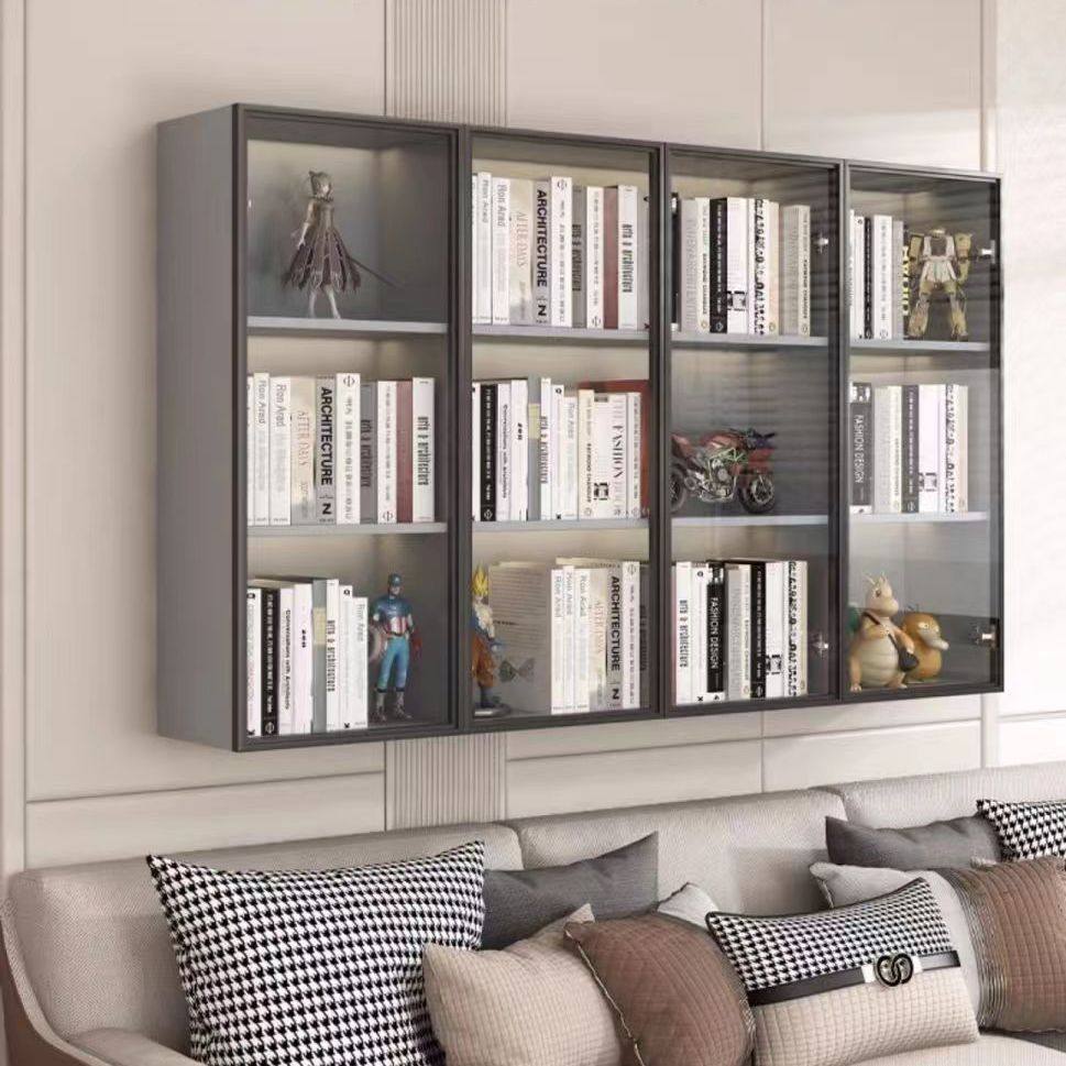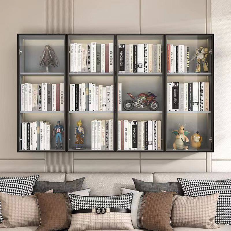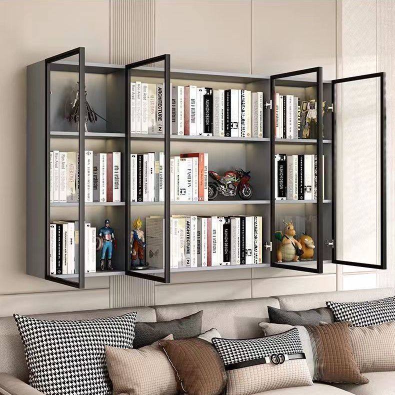 墙上书架书柜实木墙壁吊柜轻奢玻璃门手办展示柜收纳储物柜壁柜