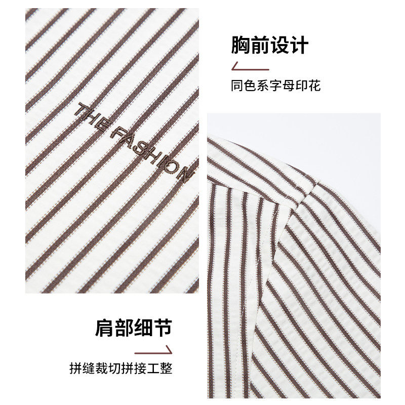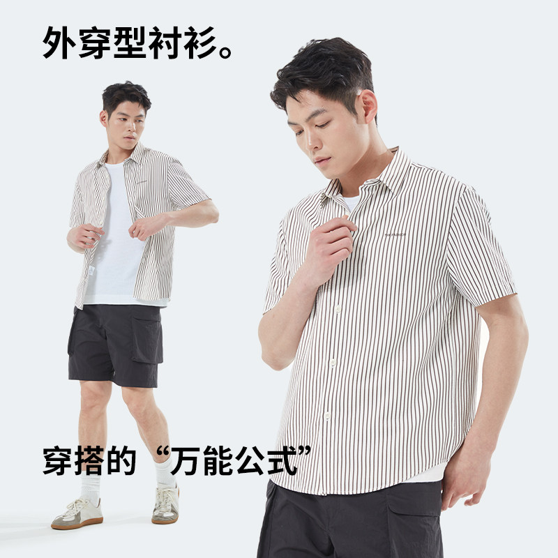 杉杉奥莱男士短袖衬衫2025新款夏季薄款条纹商务高级感衬衫男款