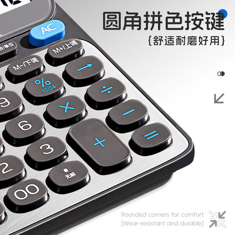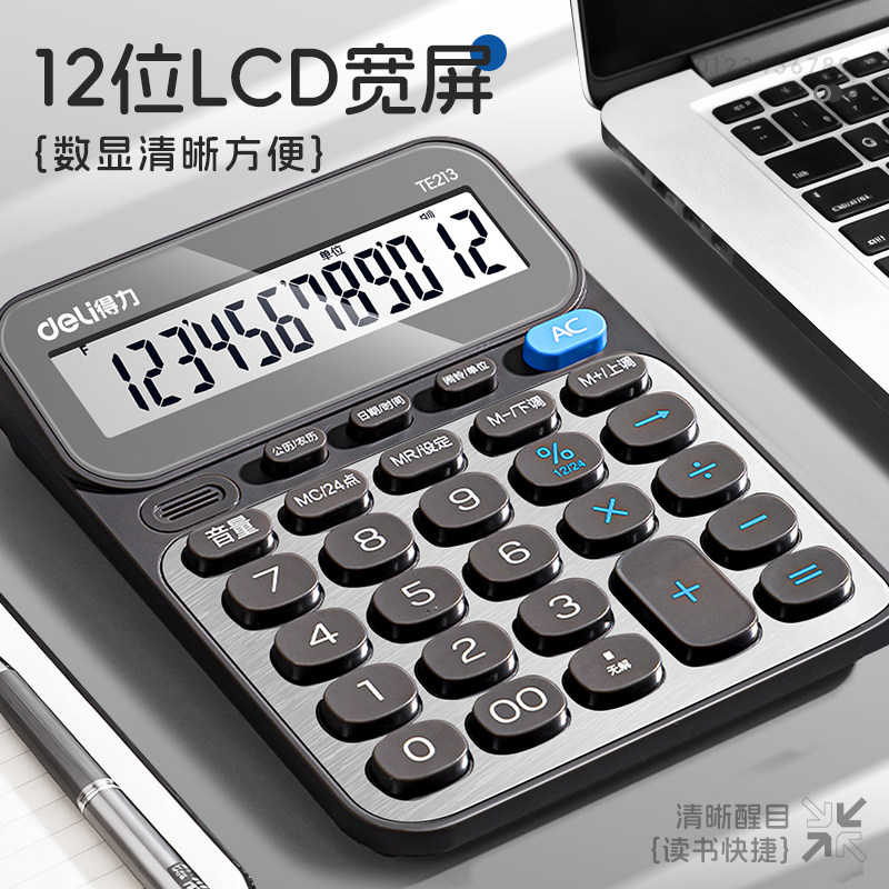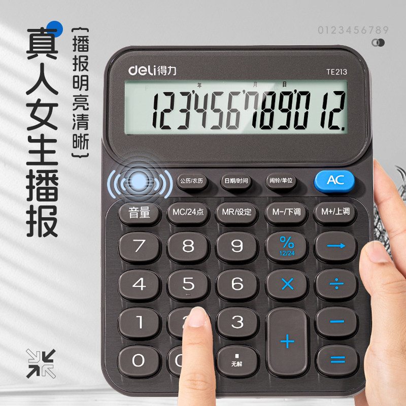 得力计算器真人语音播报办公用学生用会计用大屏幕大按键宽屏数显计算器多功能便携商用双电池款商务款计算器