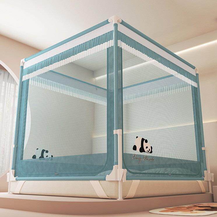 新款家用蚊帐坐床式防摔蚊帐加厚帐纱宝宝用三开门蚊帐方顶拉链式