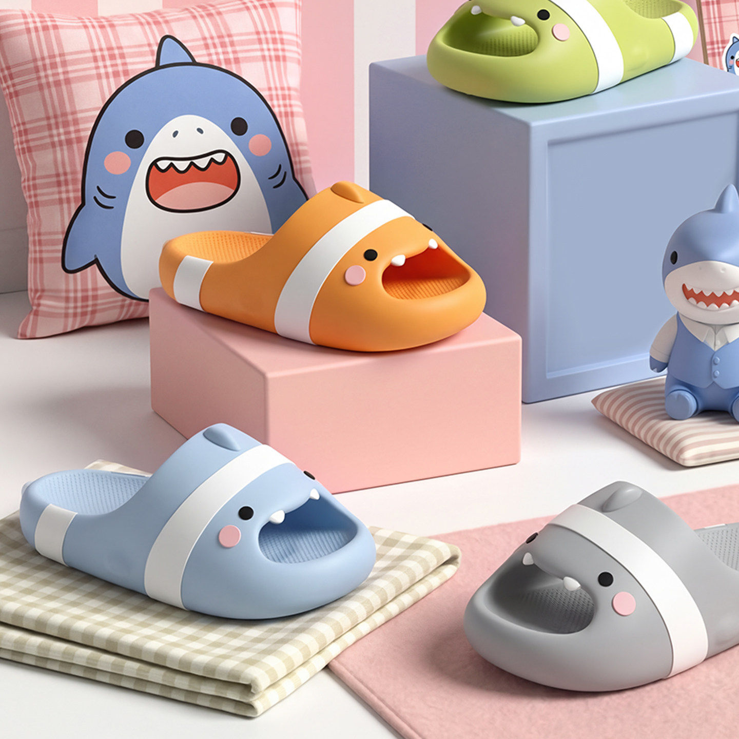 小鲨鱼拖鞋女款2026新款夏季室内家居浴室防滑防臭亲子儿童男红色