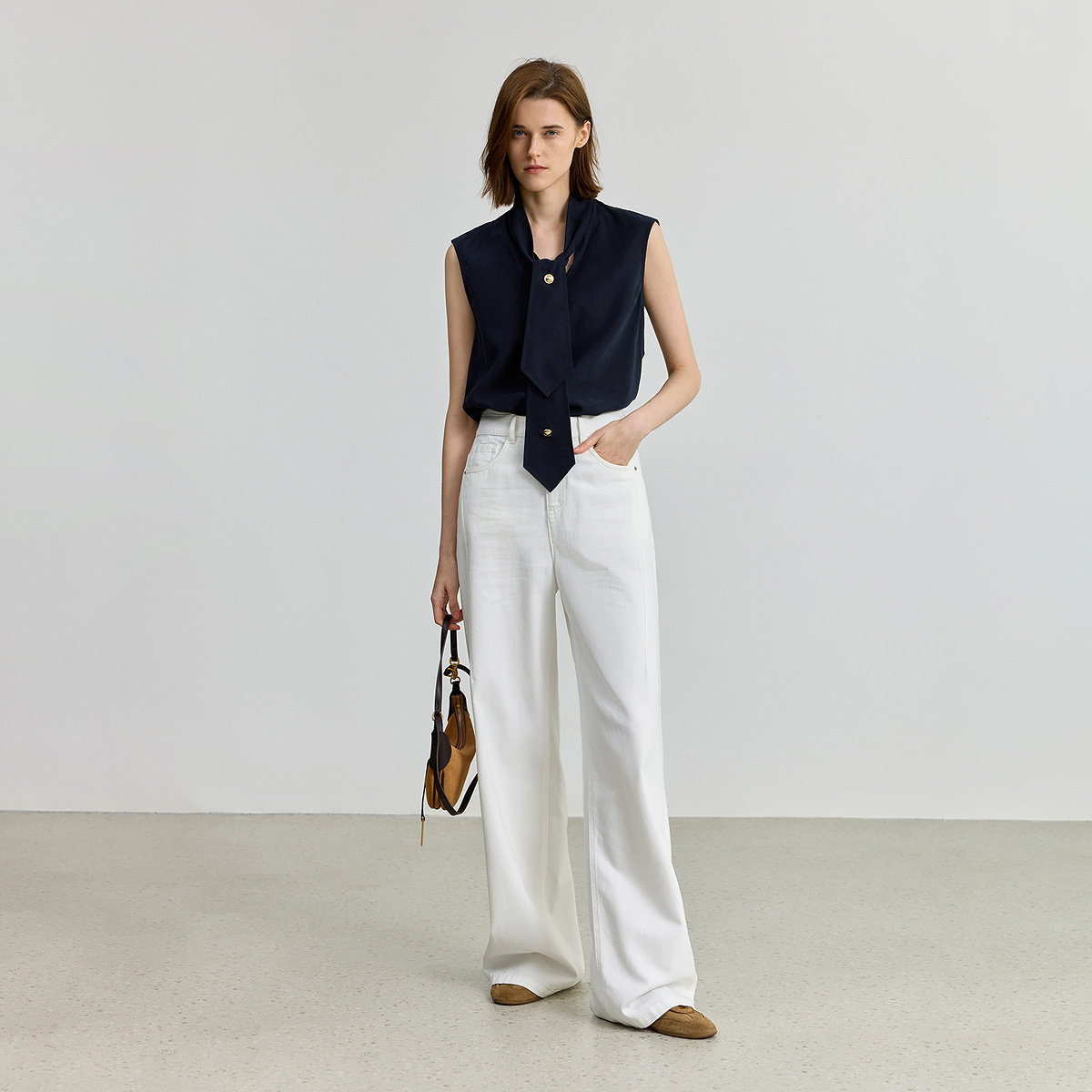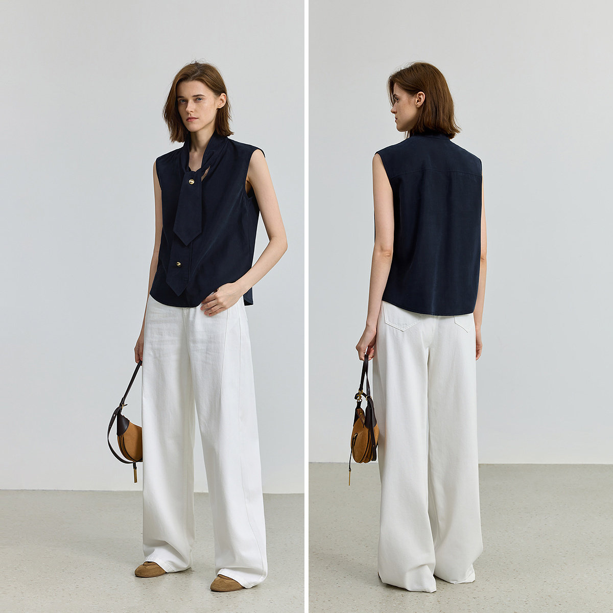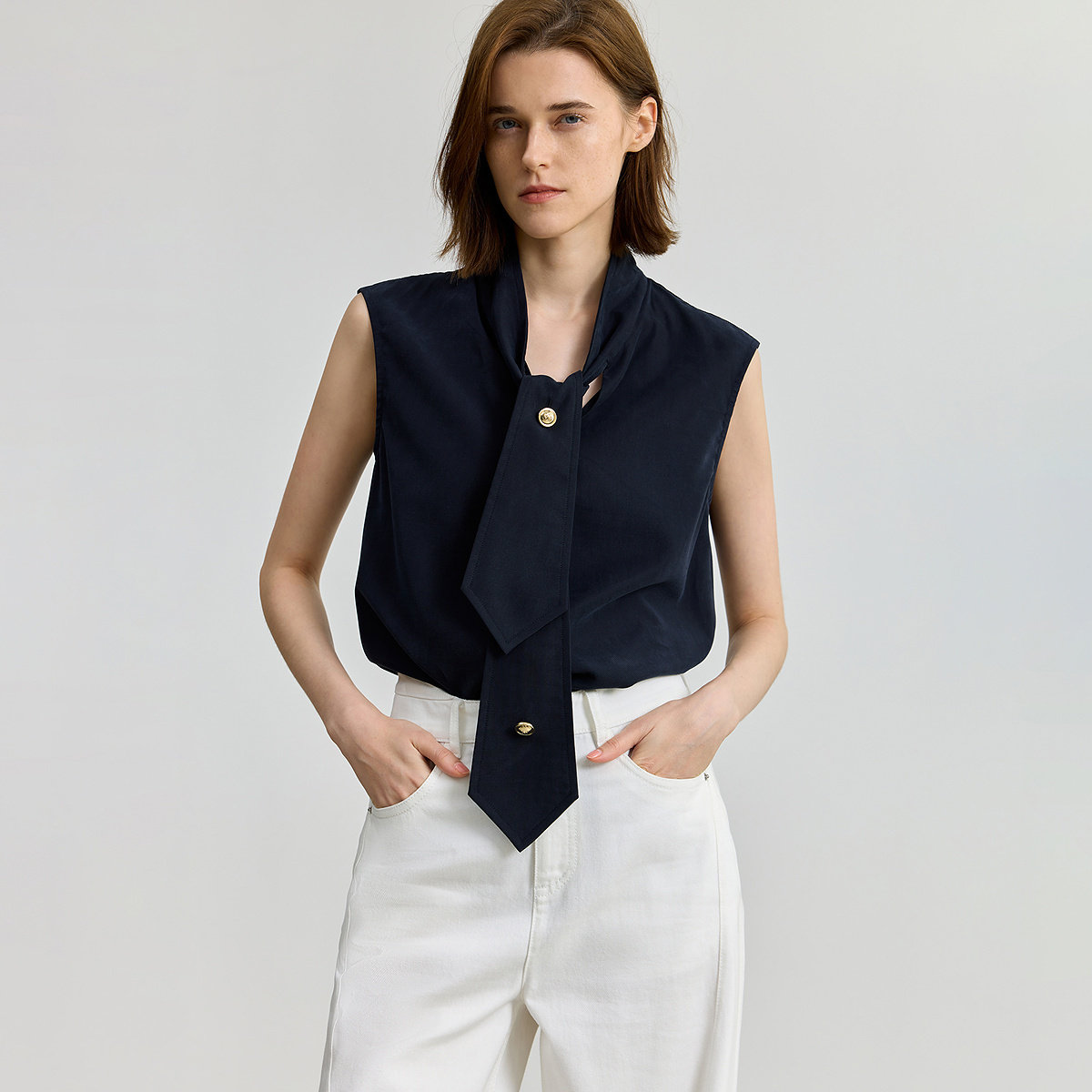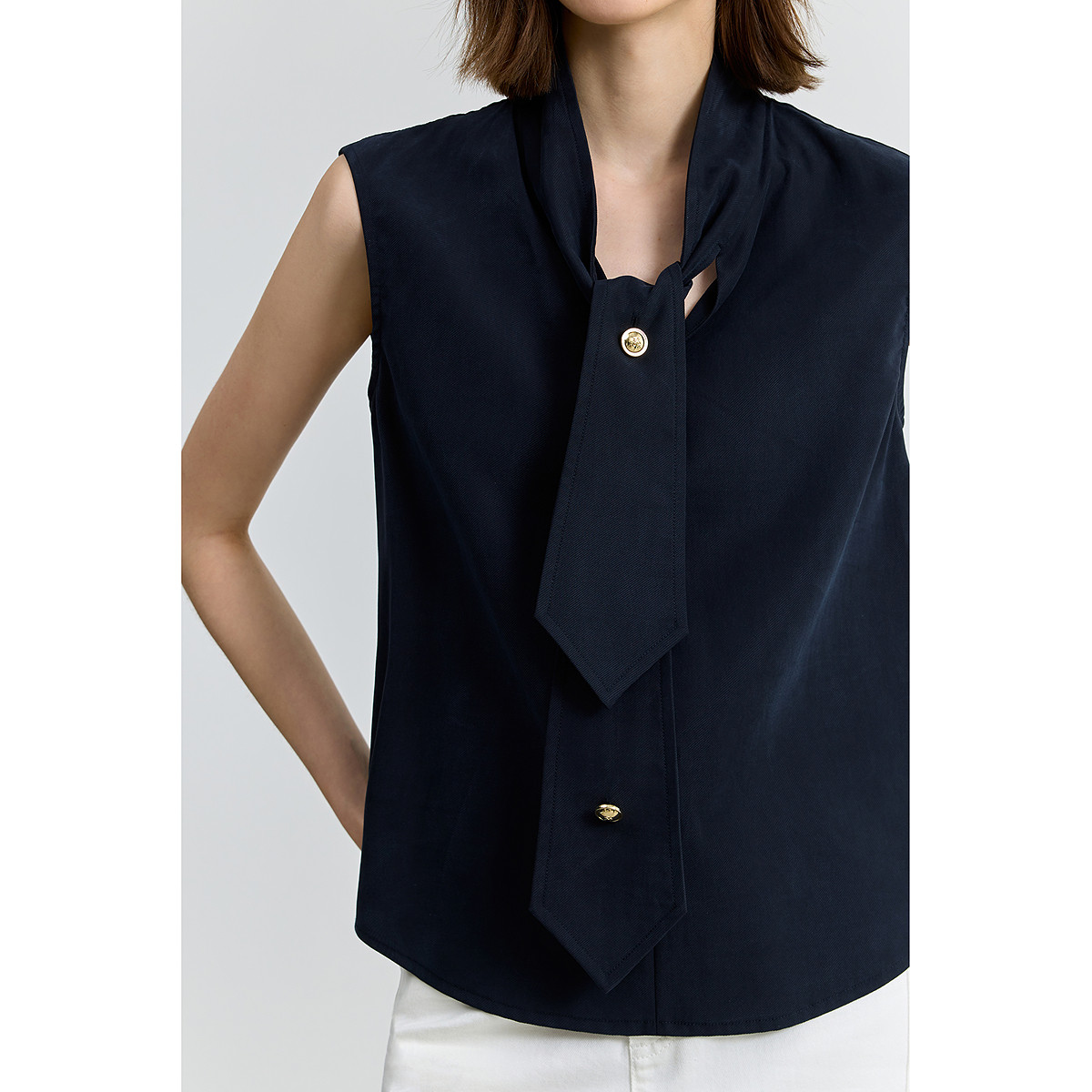 【商场同款】LILY2025新款含莱赛尔复古领带无袖藏青色套头衫女