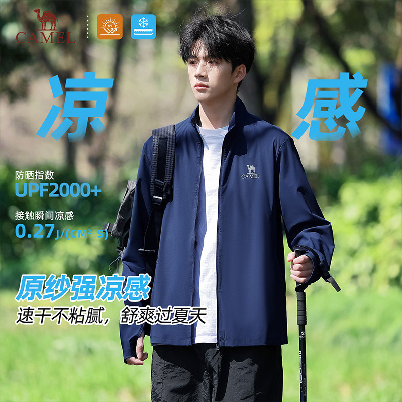 骆驼冷白皮户外防晒衣男士夏季防紫外线针织立领夹克轻薄透气外套