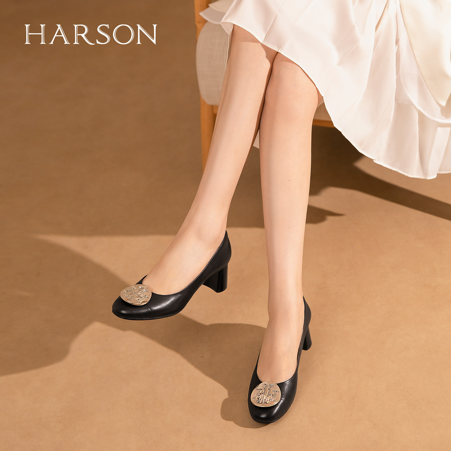 哈森时尚粗中跟时尚单鞋女2026春季新款百搭通勤鞋HWS260131