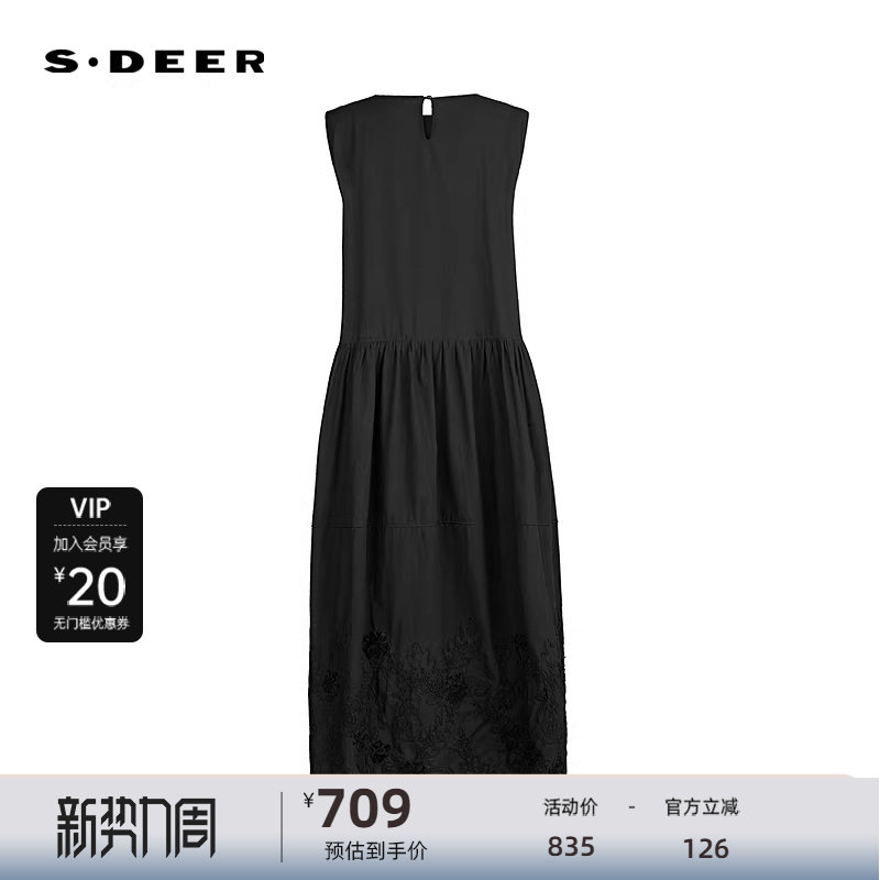 sdeer圣迪奥女装25年新品田园风圆领绣花无袖连衣裙S25281248