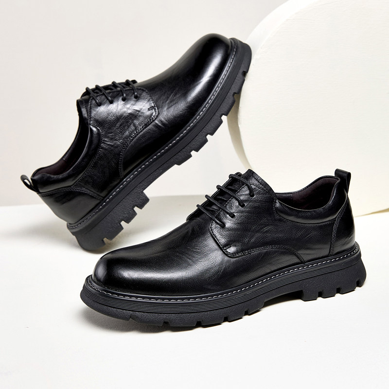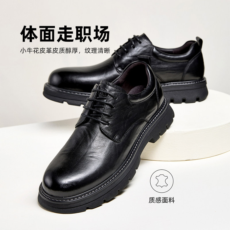 皮鞋男款高级感厚底增高英伦通勤大头德比鞋男冬季新款低帮马丁靴