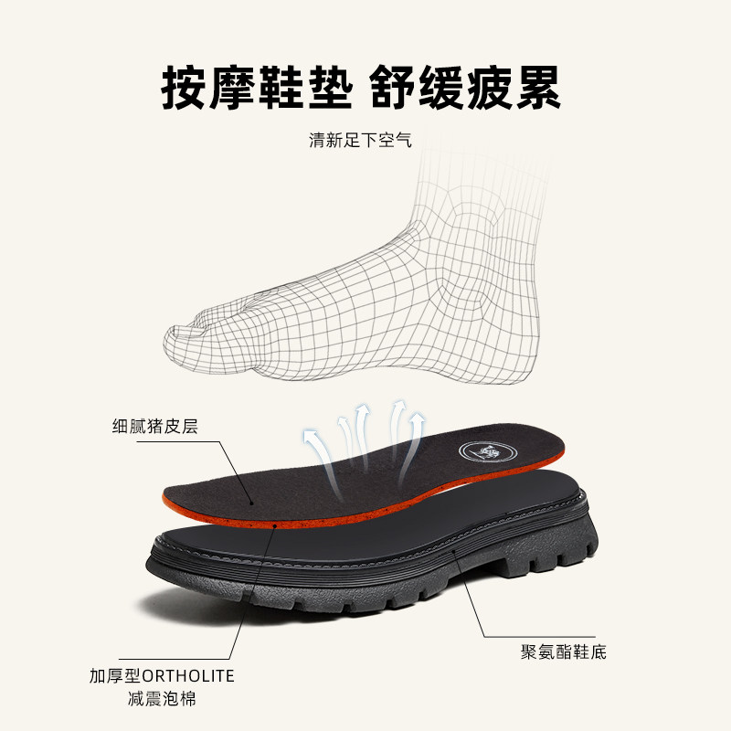 【小牛皮】青润chioryn袋鼠鞋男黑色真皮增高厚底休闲通勤风皮鞋