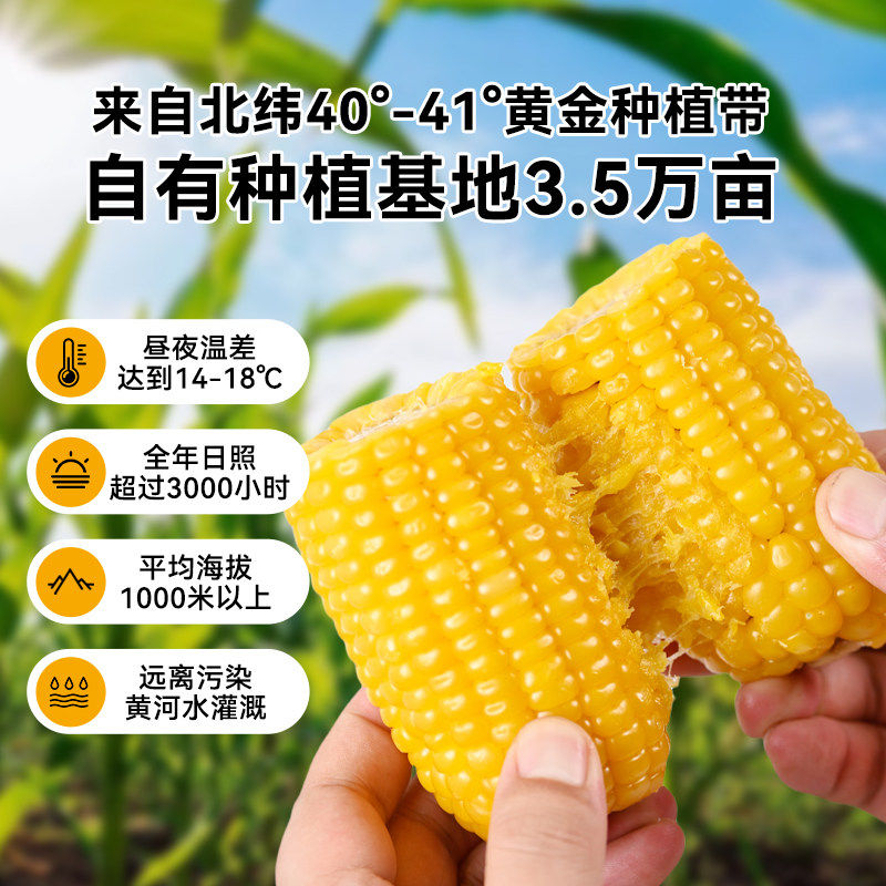 东北黑龙江黄糯玉米新鲜软糯粘黏新鲜真空装代餐玉米棒加热即食