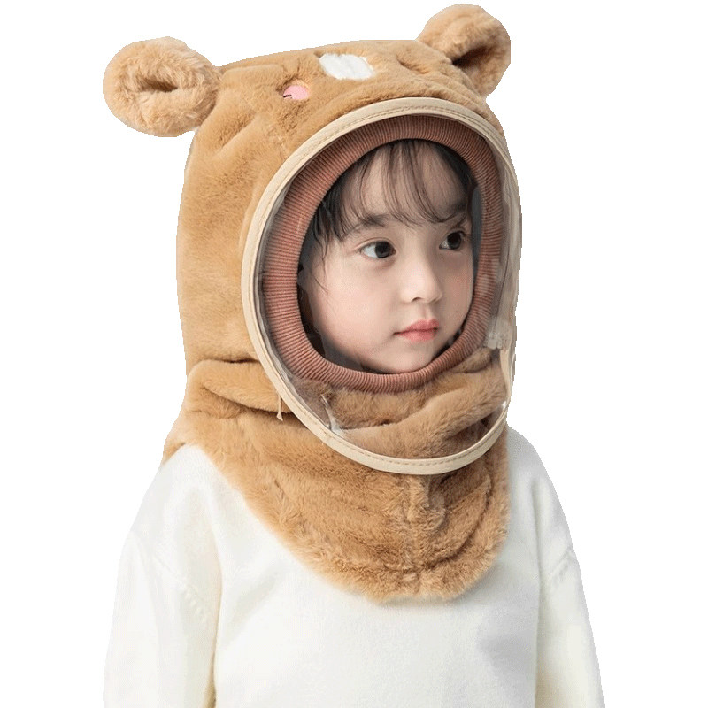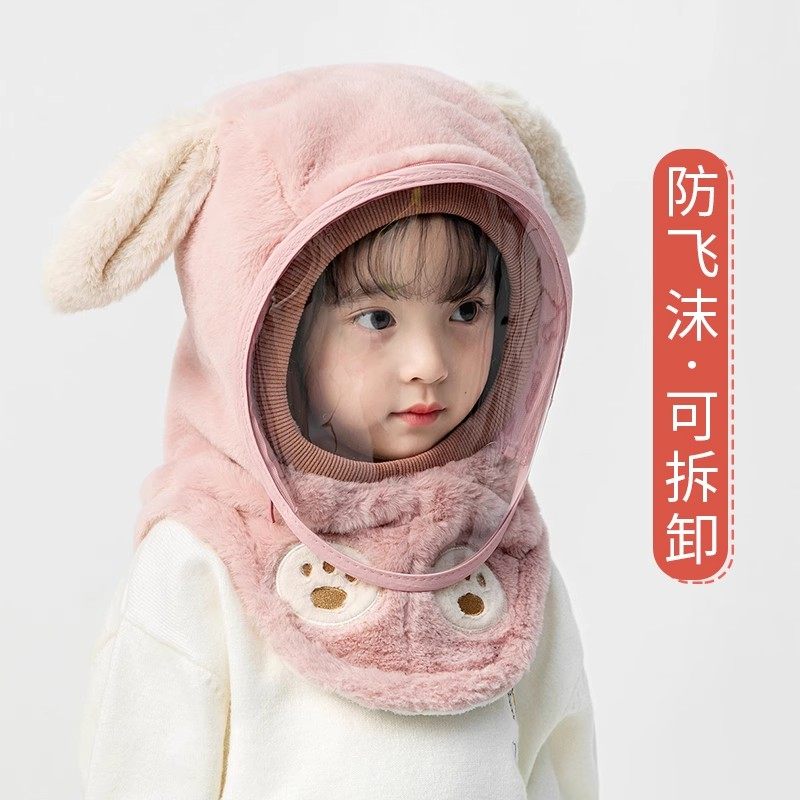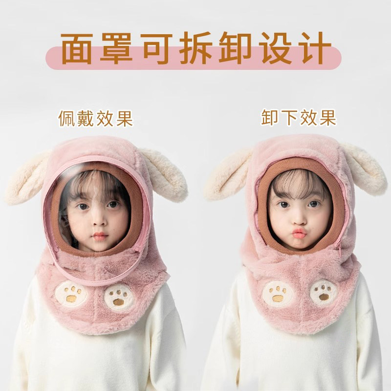 儿童帽子保暖骑车防风帽面罩保暖护耳围巾一体男女孩电动车帽冬季