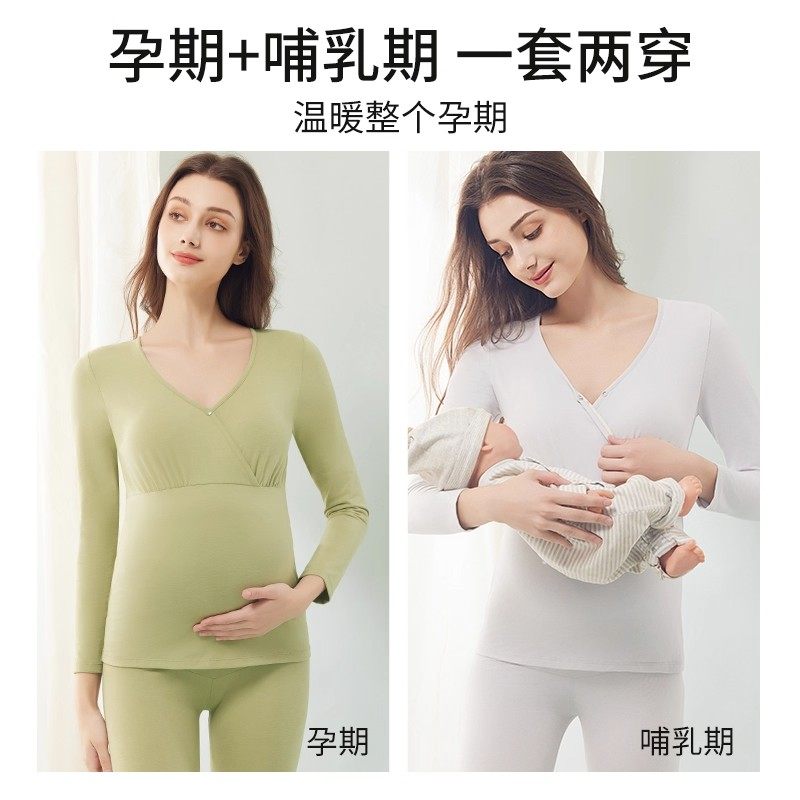 婧麒孕妇秋衣秋裤套装保暖内衣孕期打底产后哺乳喂奶大码月子服冬