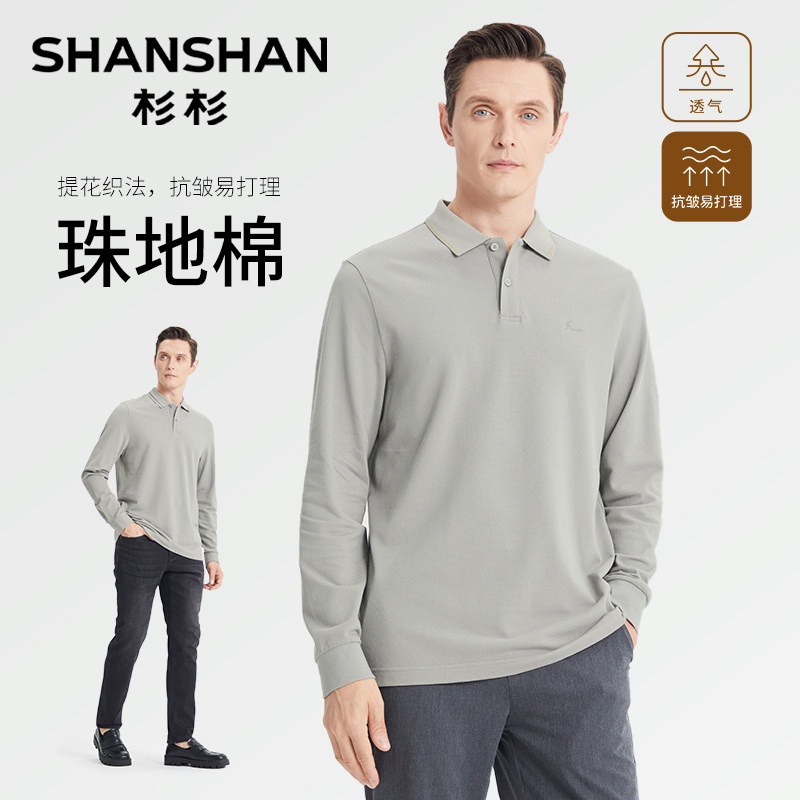 杉杉官方长袖polo衫男款2025春秋季新款中年爸爸装纯棉男士t恤衫